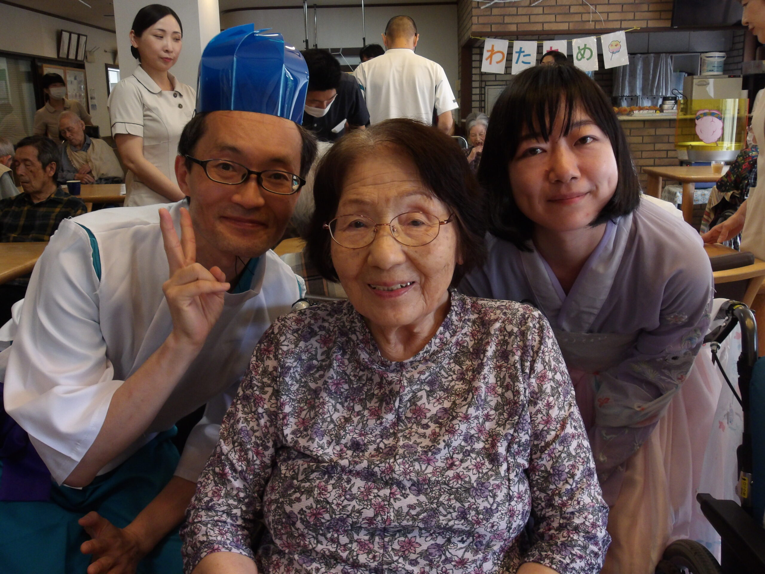 わたあめをご入居者と一緒に作りお祭りのような雰囲気