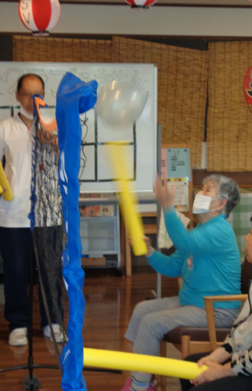 8月9日(土)日野東館にてレクリハクラブを開催いたしました。今回の種目は風船バレーです。レクリエーションとリハビリを合体させたこの「レクリハ」ですが、今回も大変な盛り上がりを見せました。
