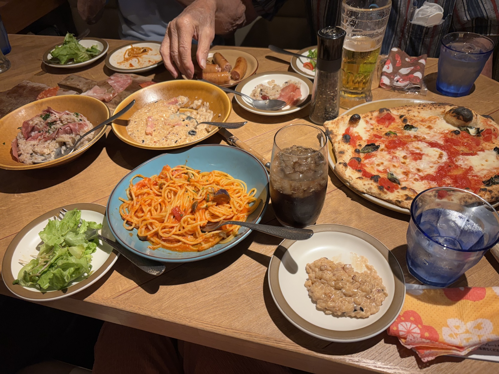 食べ放題で、ピザやパスタなど、