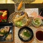 お品書きは、お赤飯、和牛の炙り、天ぷら三種盛、煮〆、茶碗蒸し、玉子焼き、メロンです。