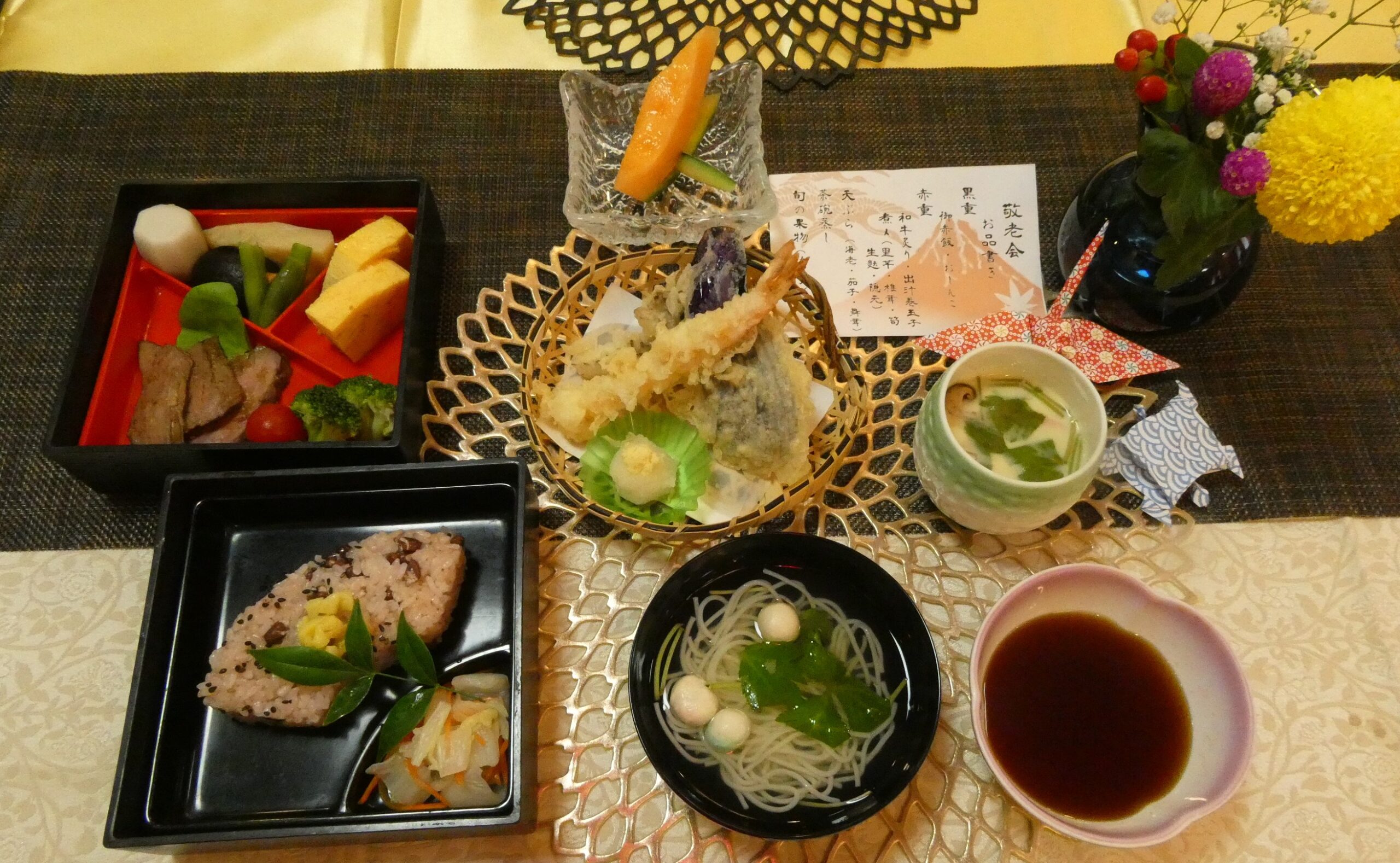 午前中は、祝い年を迎えられた10名の方への表彰式を行い、昼食にはお祝い膳をご用意させていただきました。