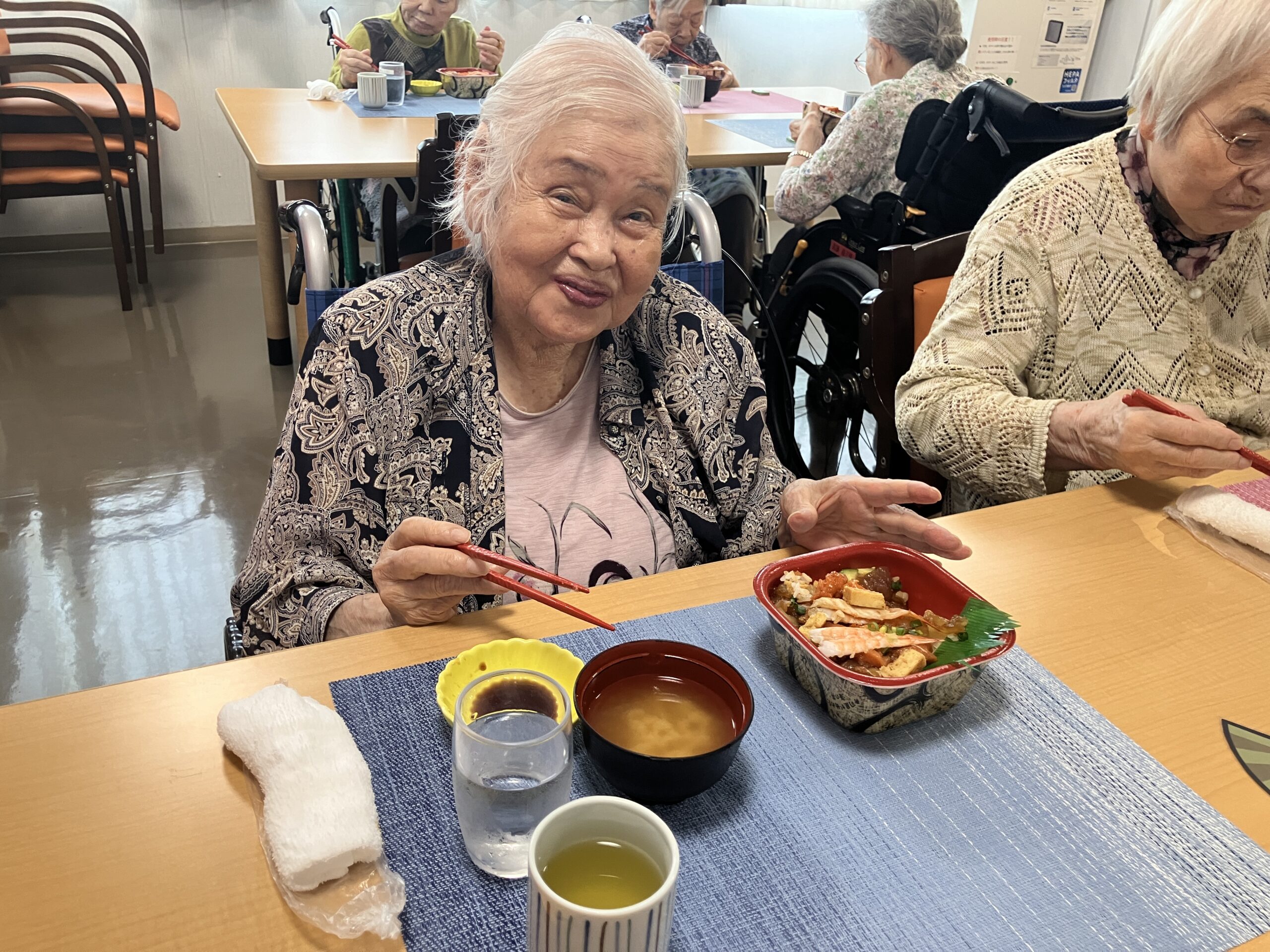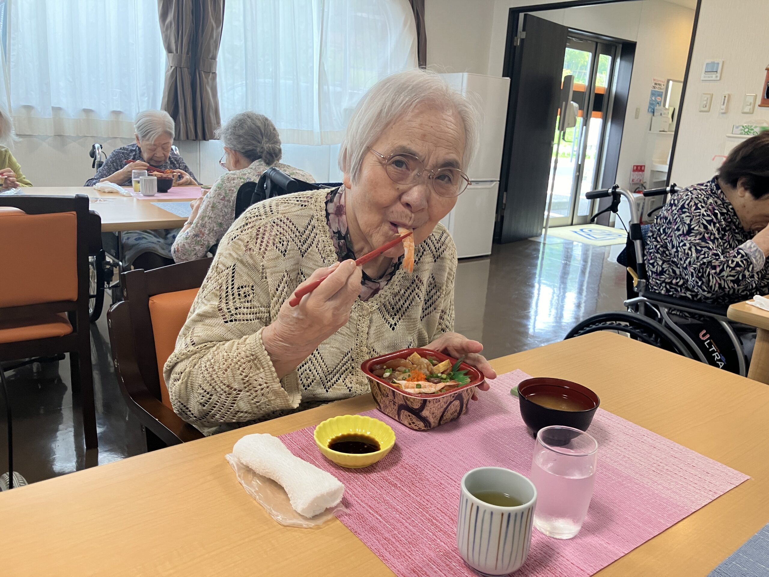 サーモンやまぐろ、玉子など漬けになった刺身と酢飯の愛称が抜群♪「美味しい~♡」と喜ばれ、ほとんどの方が完食されておりました(^^♪