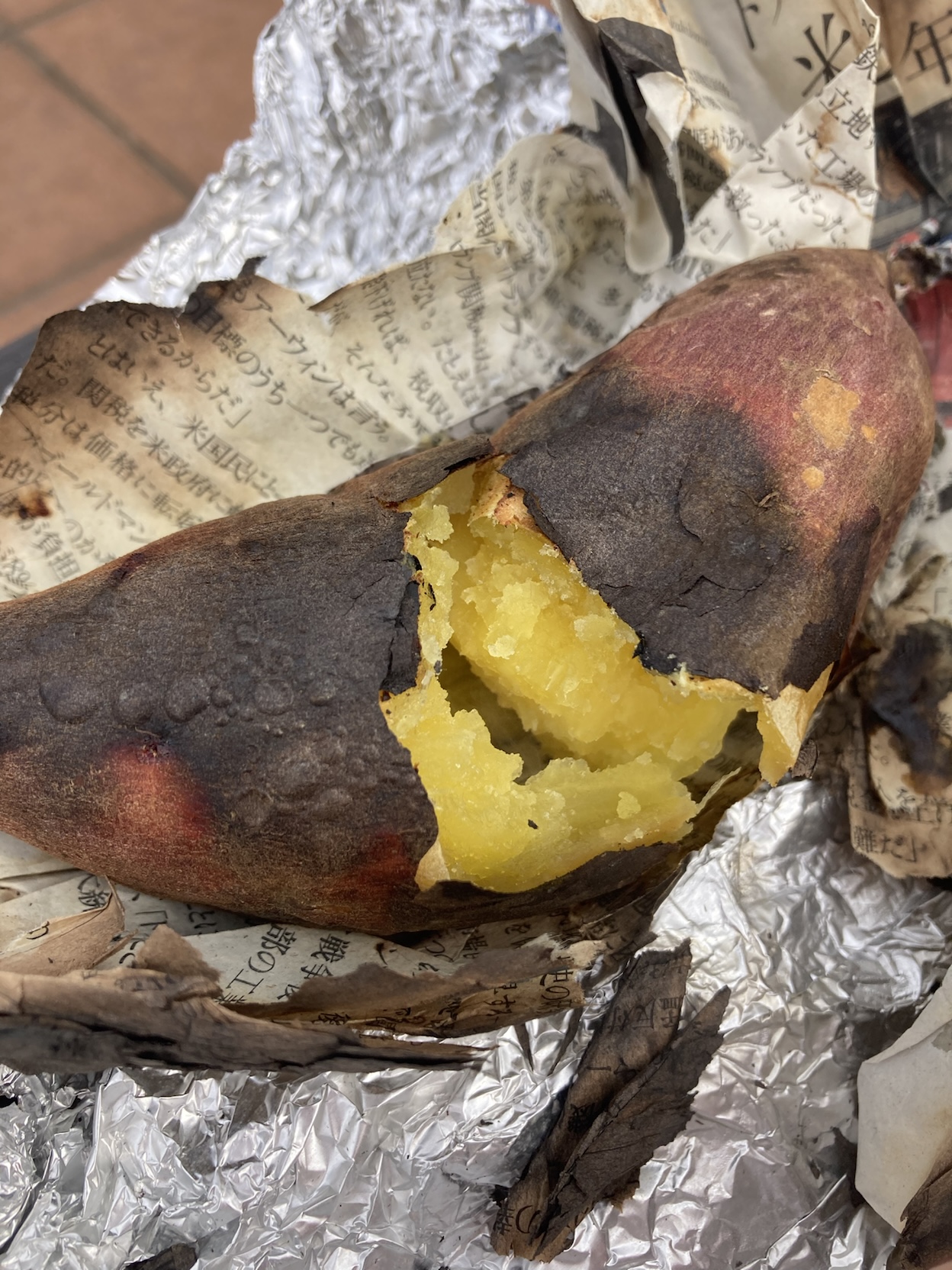 おやつは、焼き芋です。