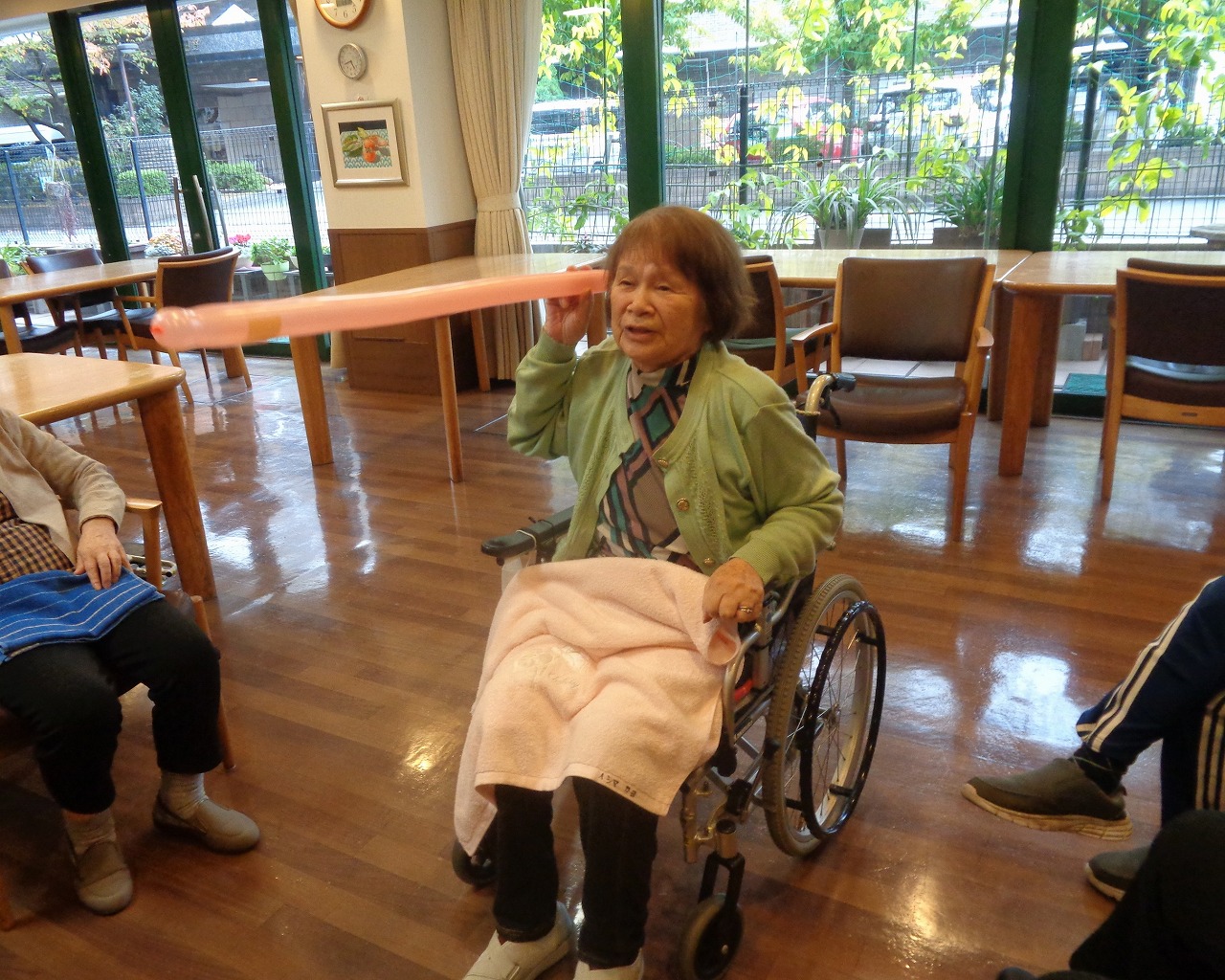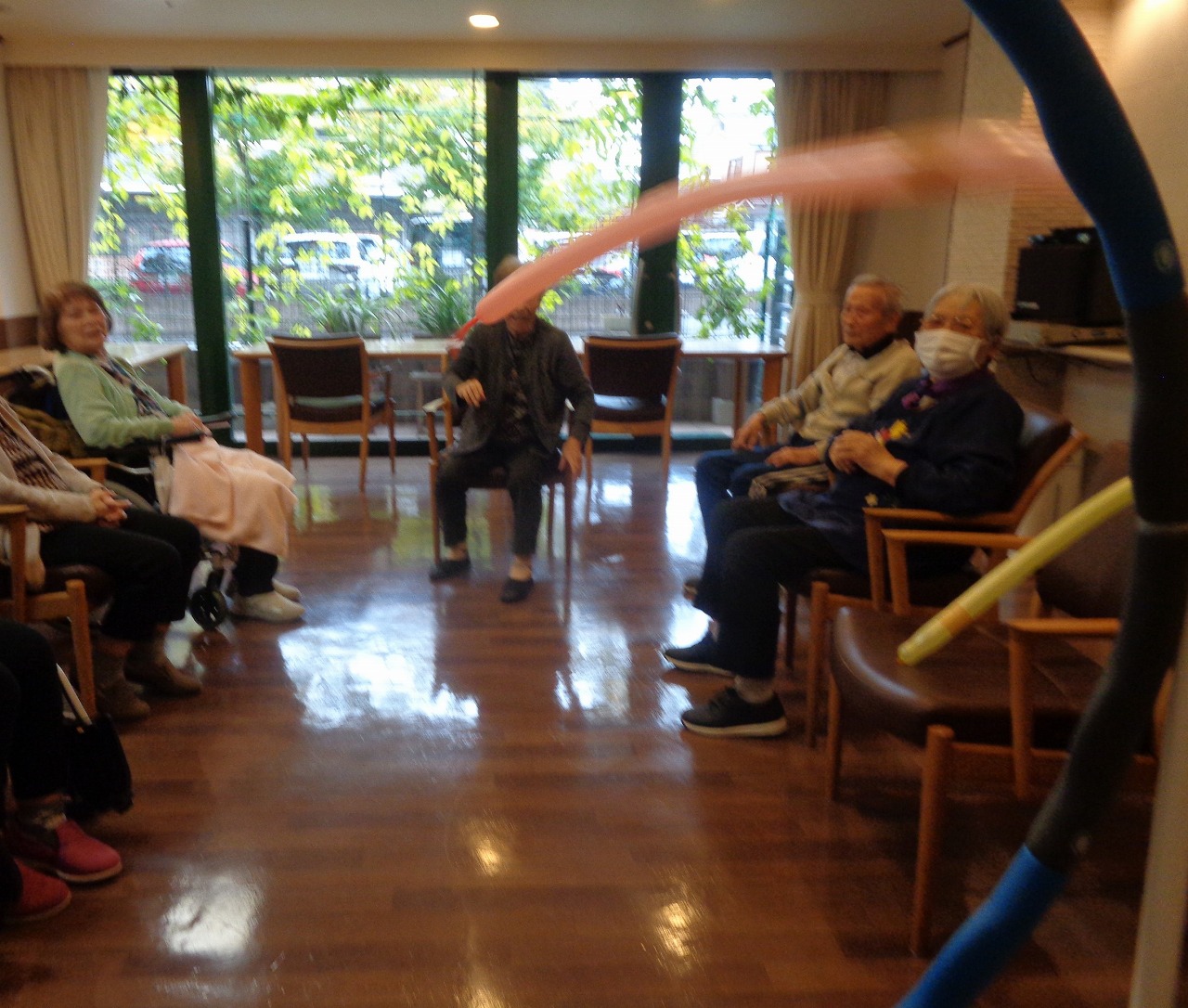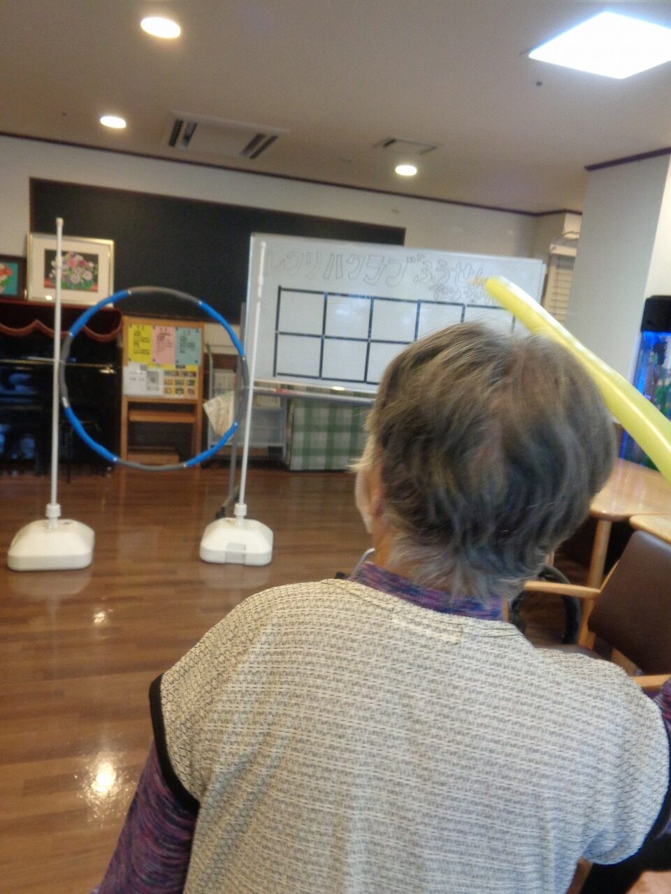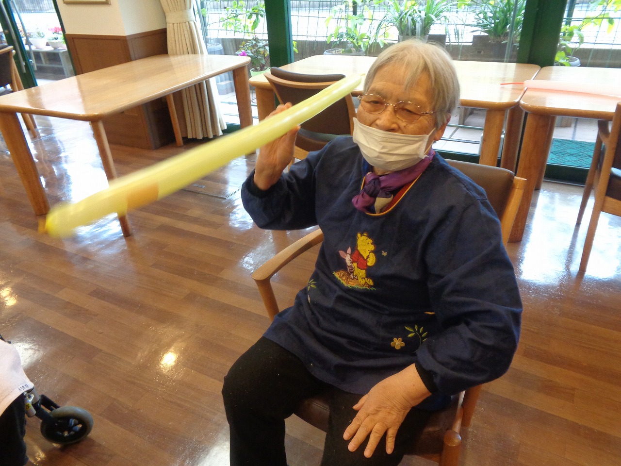11月13日(木)日野東館にてレクリハクラブを開催いたしました。今回の種目は大人気「ペンシル風船やり投げ」です!バルーンアートに使用する風船を槍に見立て、フラフープを的として得点を競います。シンプルなゲームですがとても楽しめます。