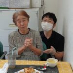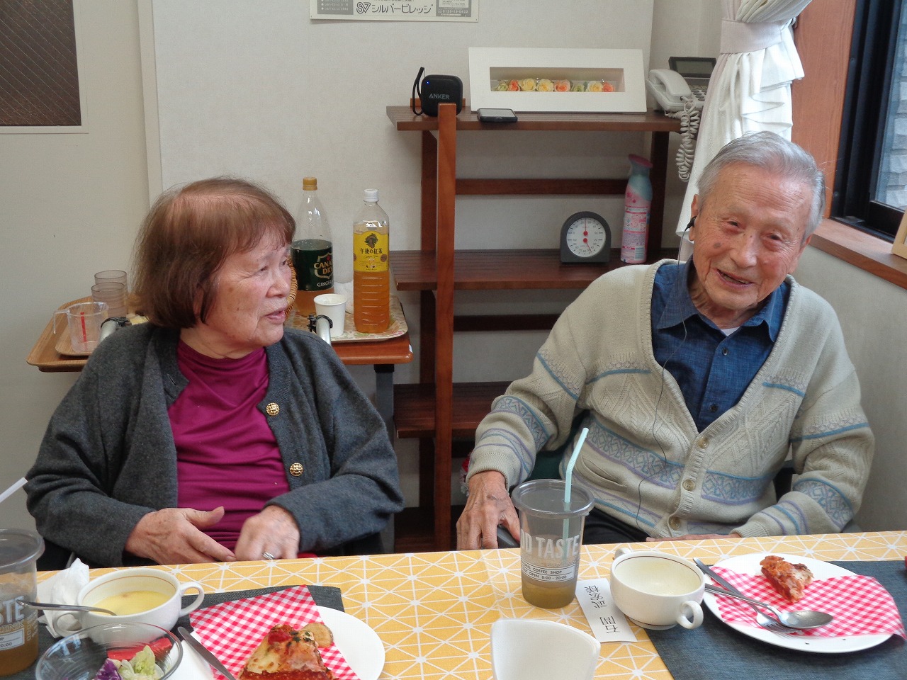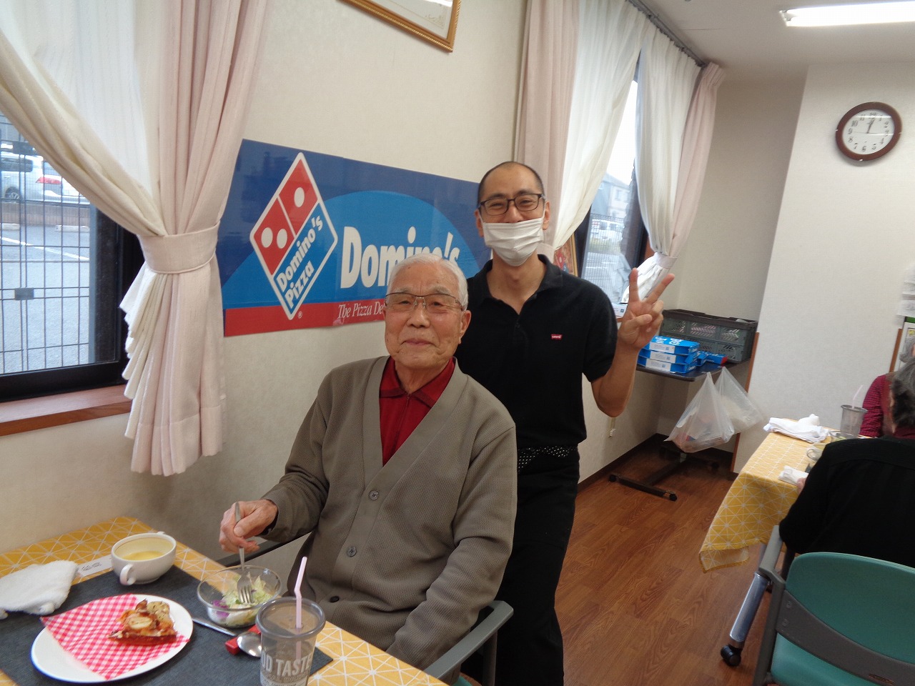 「ピザなんて何年ぶりかしら」と少し戸惑われている方もおられましたが、皆様とても楽しまれておりました。「美味しかったです」「またお願いしますね」と笑顔で居室へ戻られて行かれ、開催出来て本当に良かったと思いました。