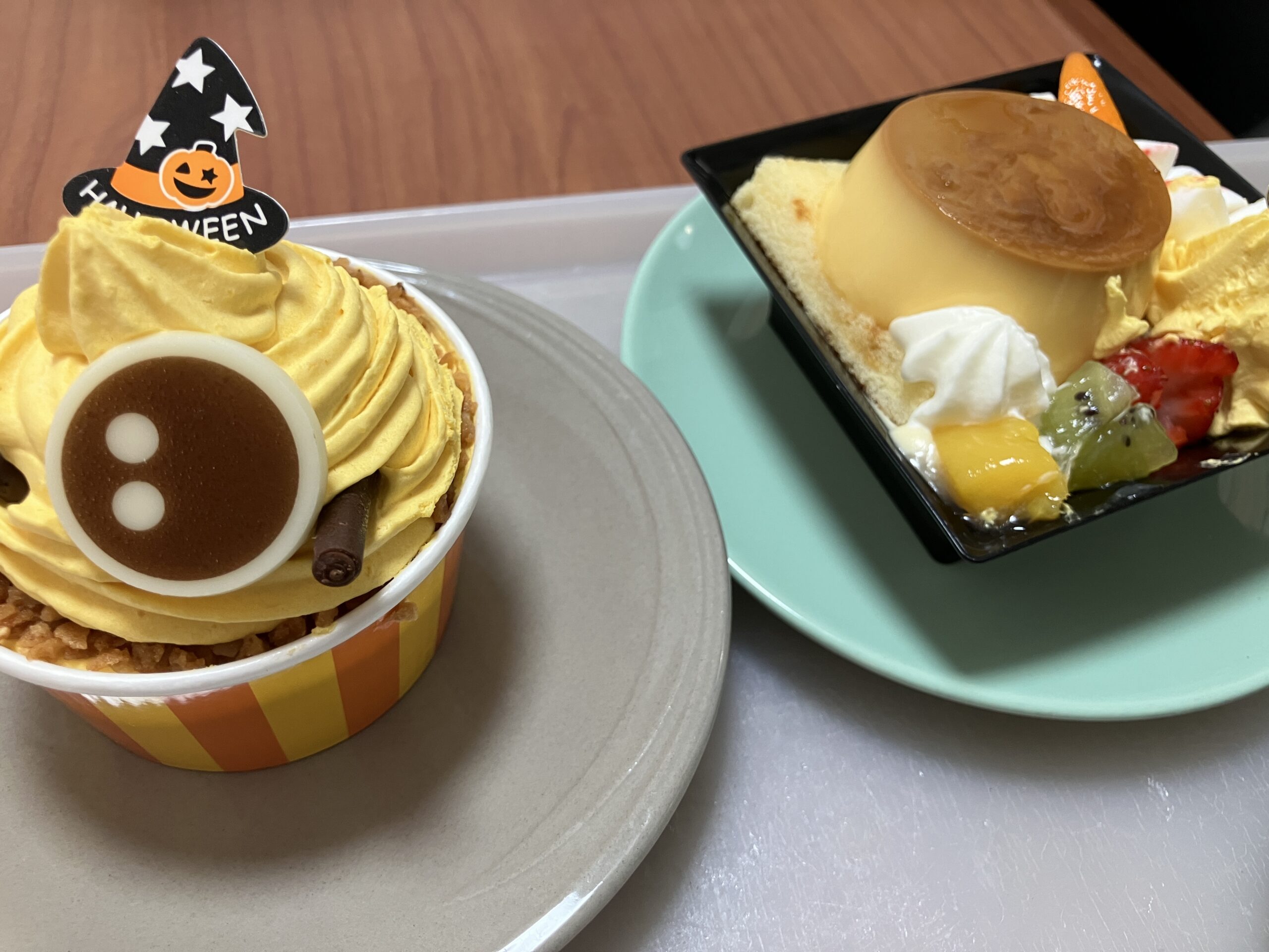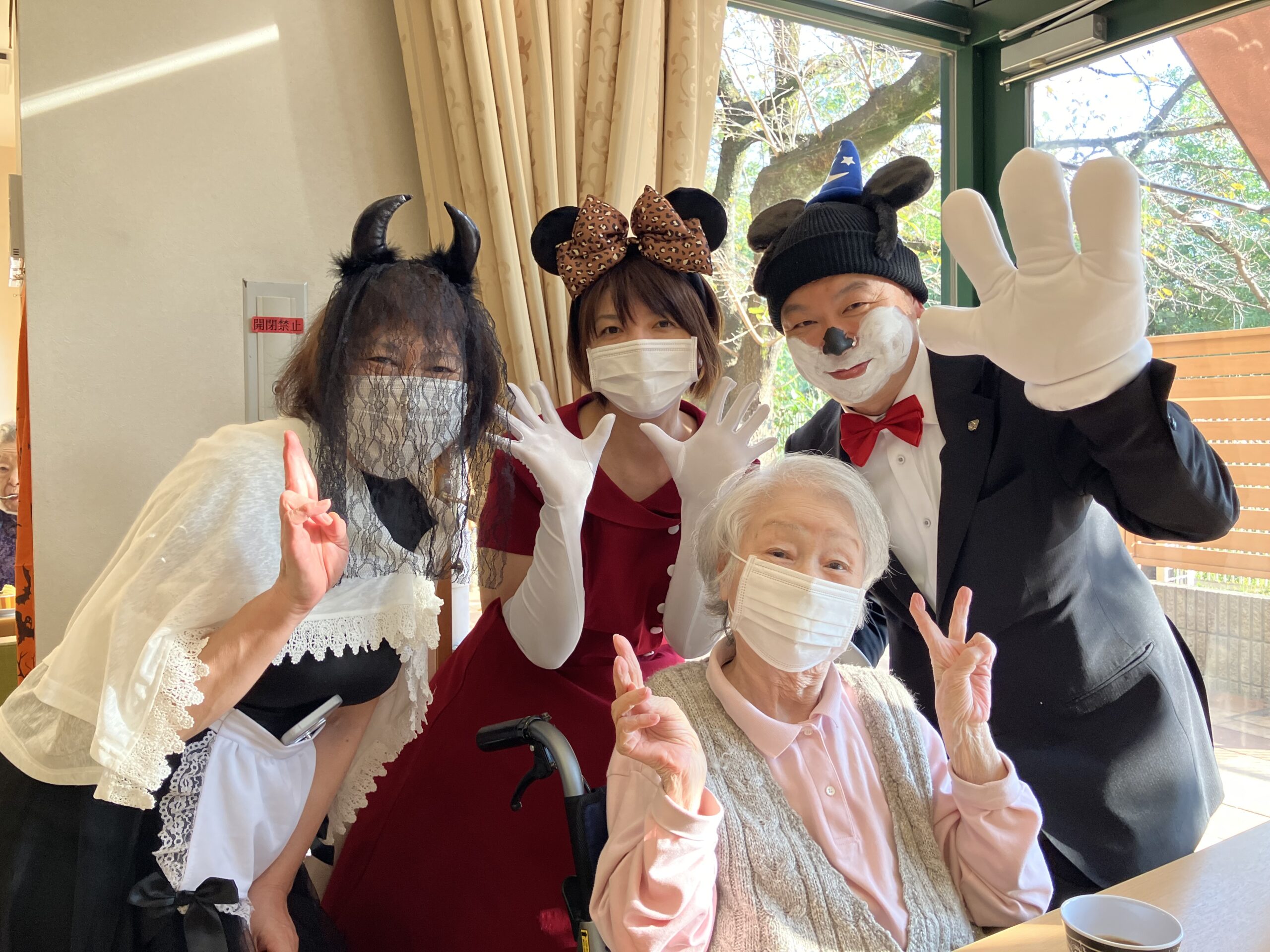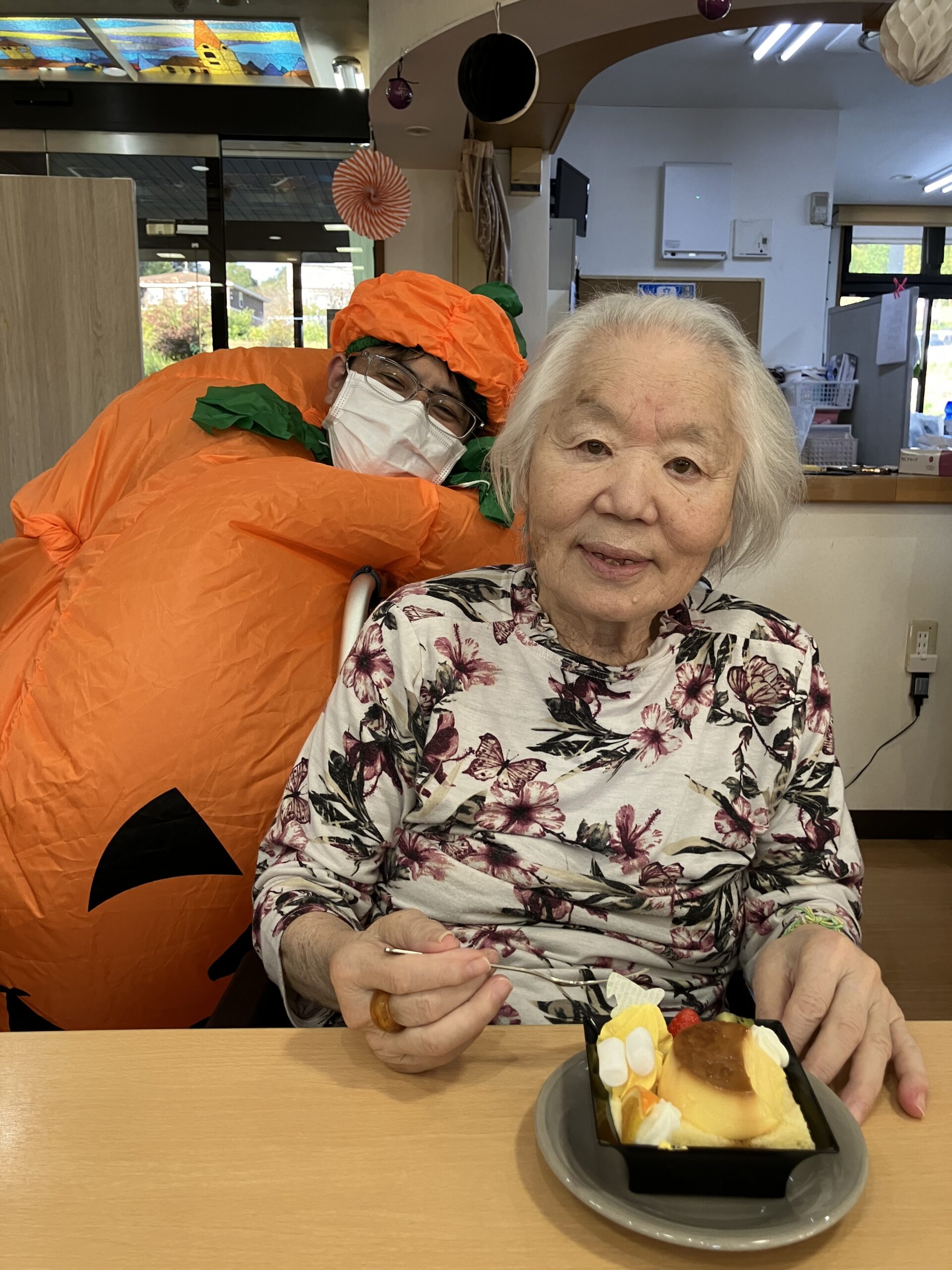 秋の恒例イベントといえば「ハロウィン」! 今年もご入居者の皆様に楽しんでいただけるよう、職員がさまざまなキャラクターに仮装して登場しました!おやつの時間には、可愛らしいモンブランとプリンをご用意。ハロウィンらしい色合いと味わいに、「美味しいね」と笑顔が沢山見られました。施設内もハロウィンの飾りでいっぱいになり、季節の雰囲気を感じて頂けたようです。これからも皆様に楽しんでいただけるイベントを企画して参ります♪