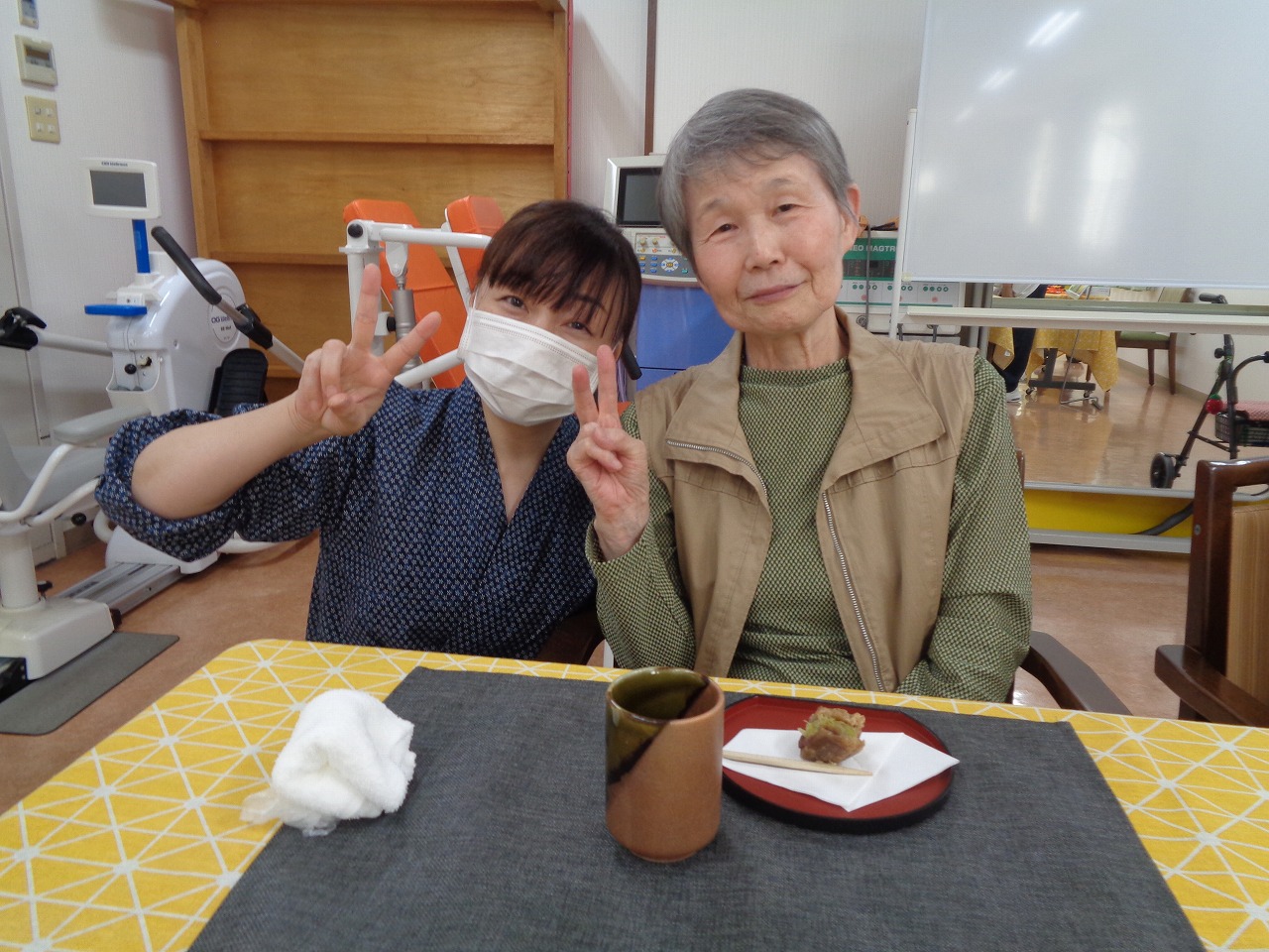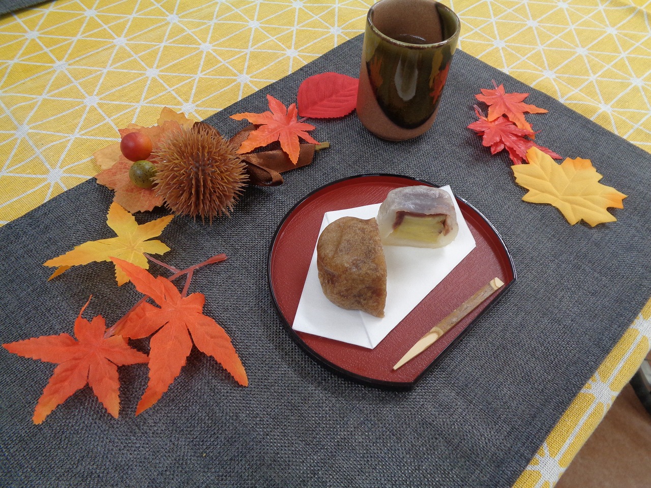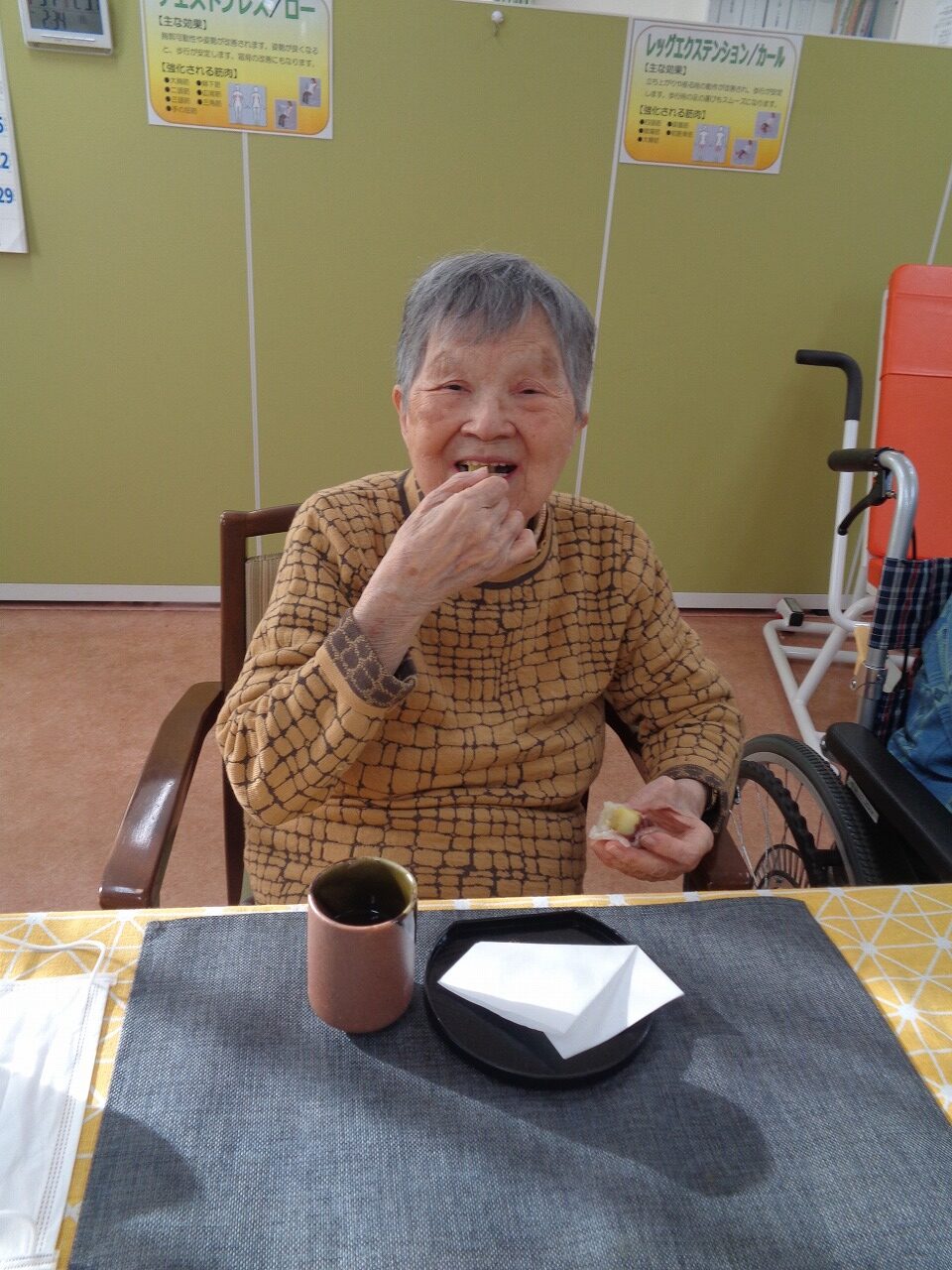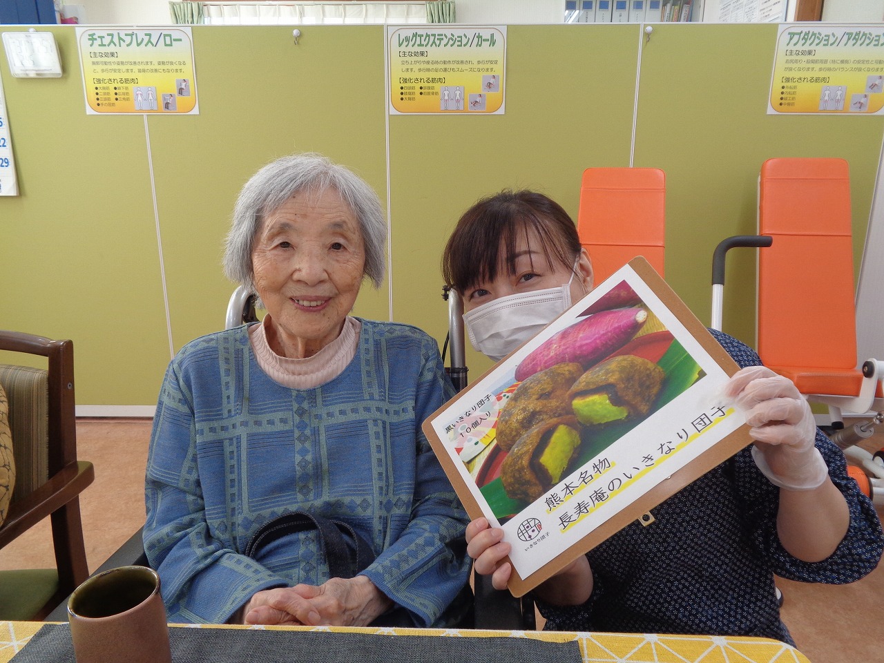 11月3日(月)、本日のおやつクラブは、熊本県の長寿庵さんから「いきなり団子」をお取り寄せしました!さつまいもと、小豆餡を、小麦粉の生地で包み、蒸し上げたお団子で、もちもちとした生地に、ホクホクのさつまいも、ほどよい甘さの小豆餡が絶妙に調和しています。参加された皆さまからも「美味しい!」と好評でした!
