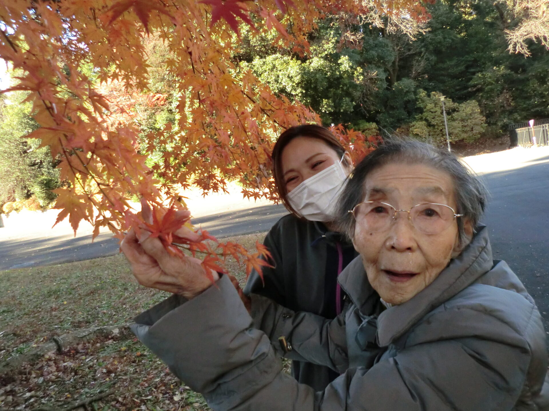 多摩御陵では、車から降りて紅葉狩りを行いました!