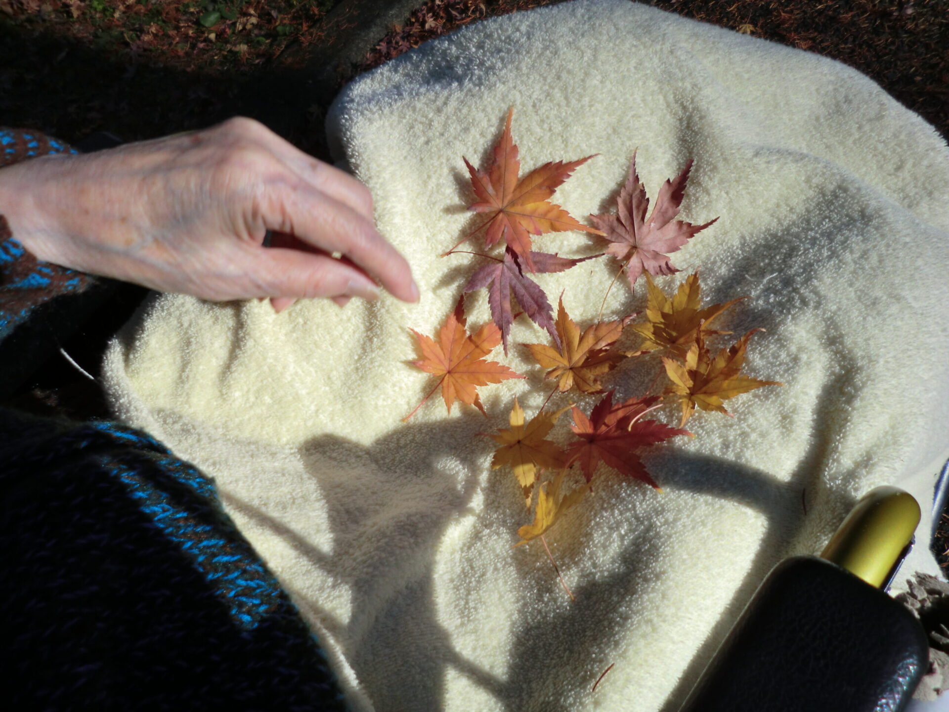 拾った紅葉は帰園後に栞にして、お渡ししています。