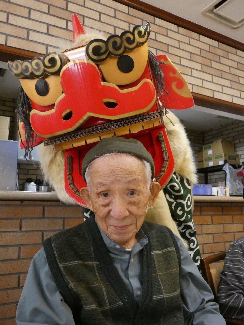 さらに獅子舞が登場!!「がぶり!」と頭を噛んでもらう事で邪気を払い、縁起良く一年のスタートを切ることが出来ました(^^)/