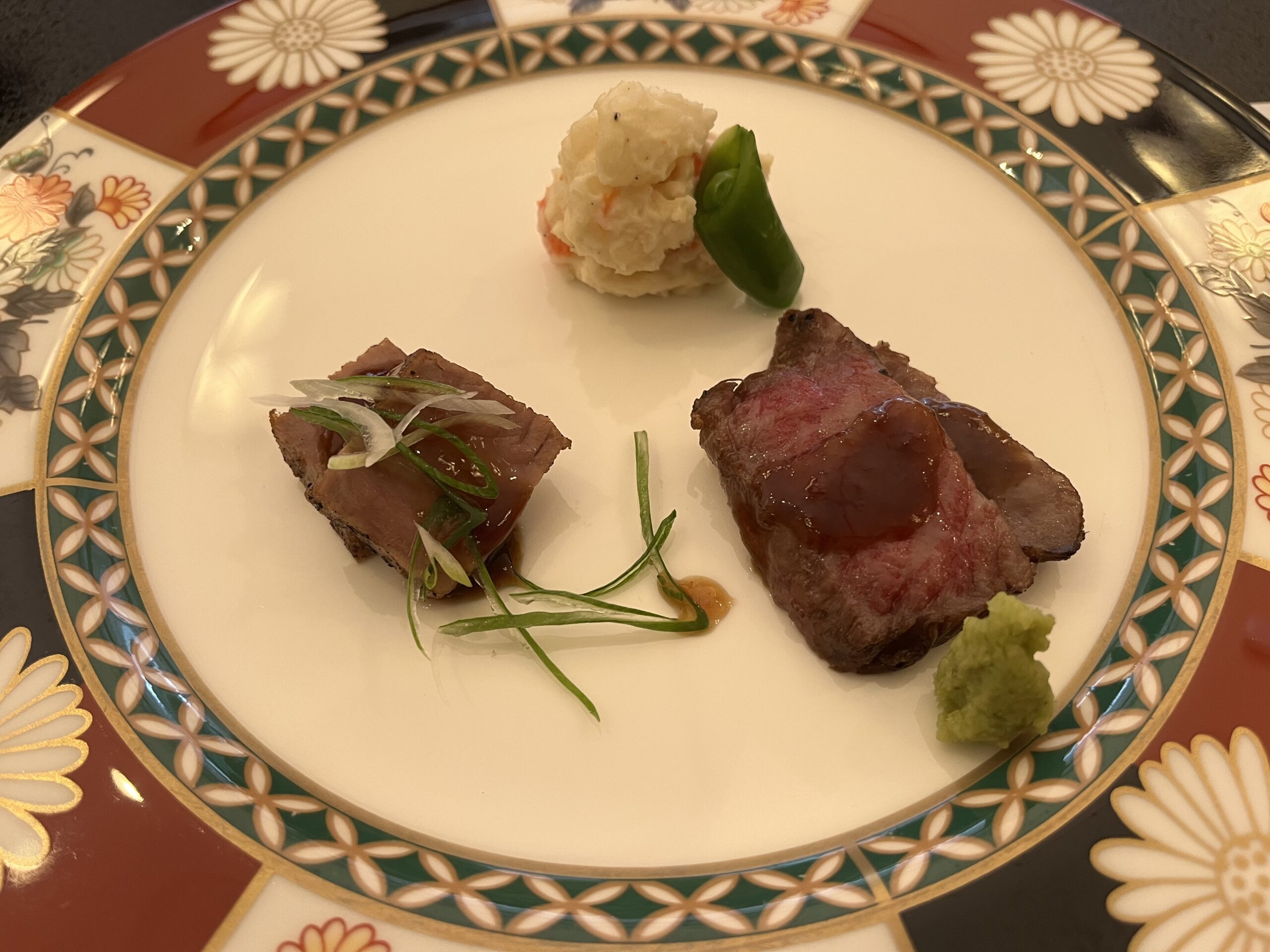 焼き物のお皿には『和牛のステーキ』と『マグロのステーキ』が♡