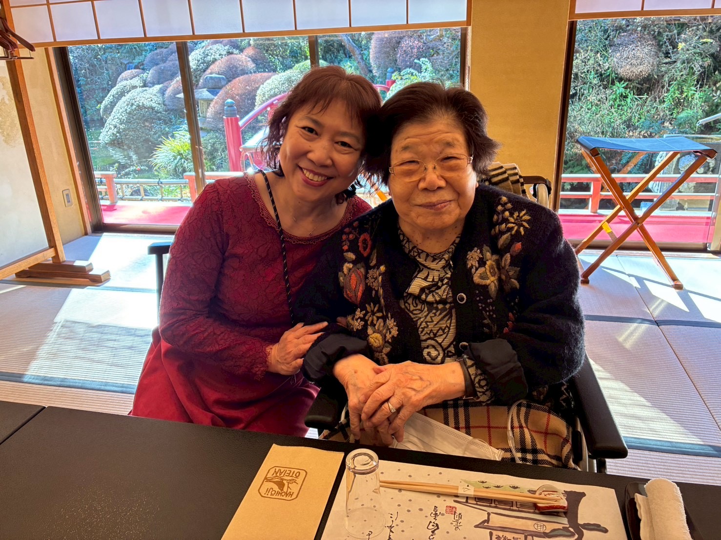 入口に入るとまず江戸・明治・大正の立派なお雛様が飾られておりました。後ろには滝が流れ、和の落ち着いた雰囲気に包まれた玄関です。お部屋からもお庭や滝が見え、車椅子でもゆったり座れる広さでした(^^♪