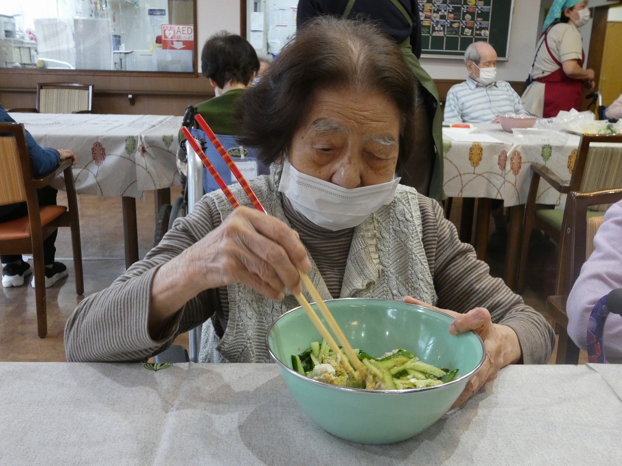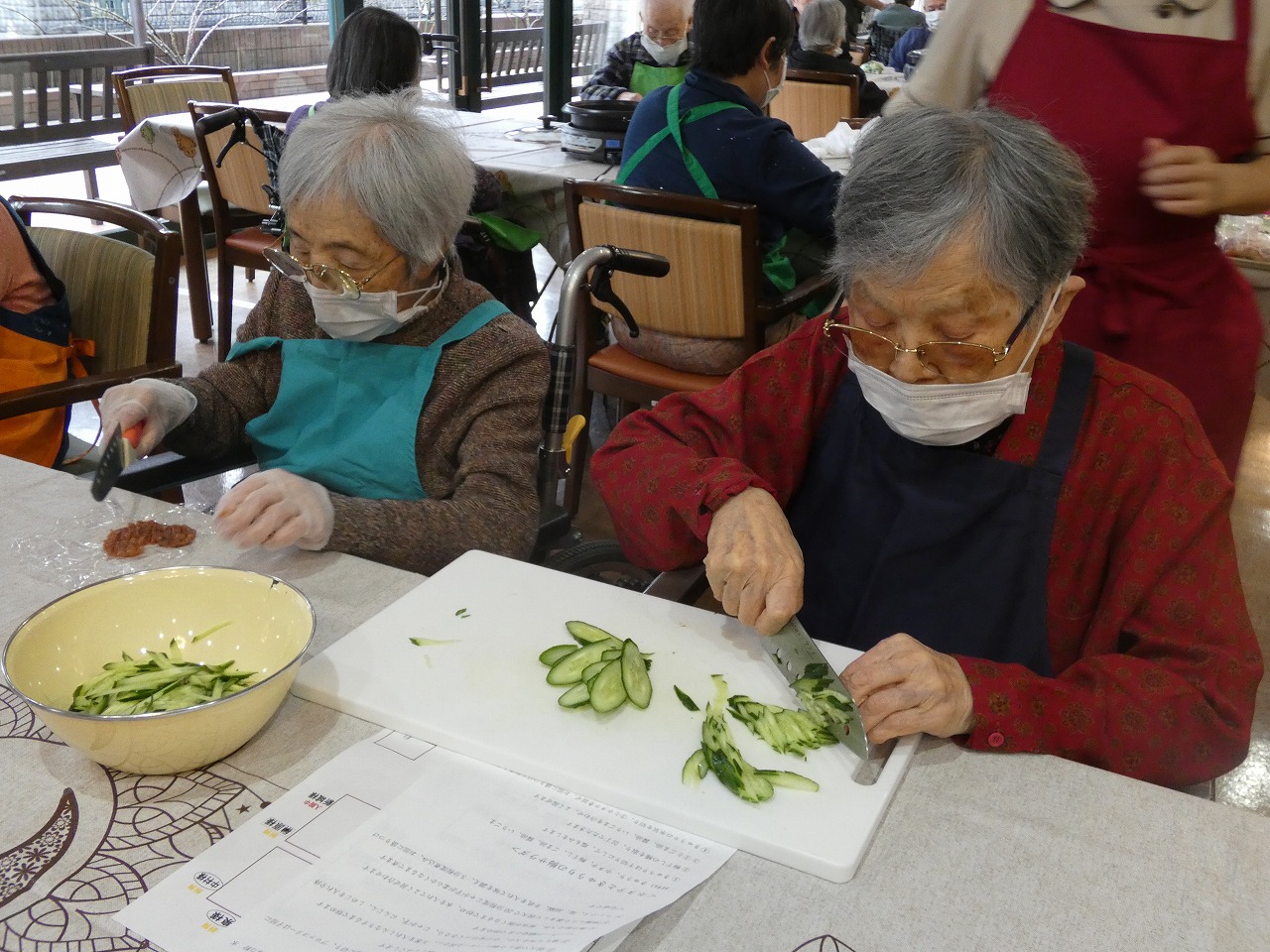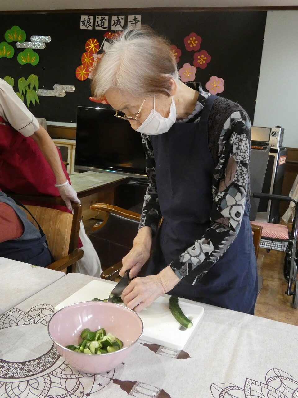 きゅうりの千切りはお任せ!と素晴らしい包丁さばきの女性の方☆