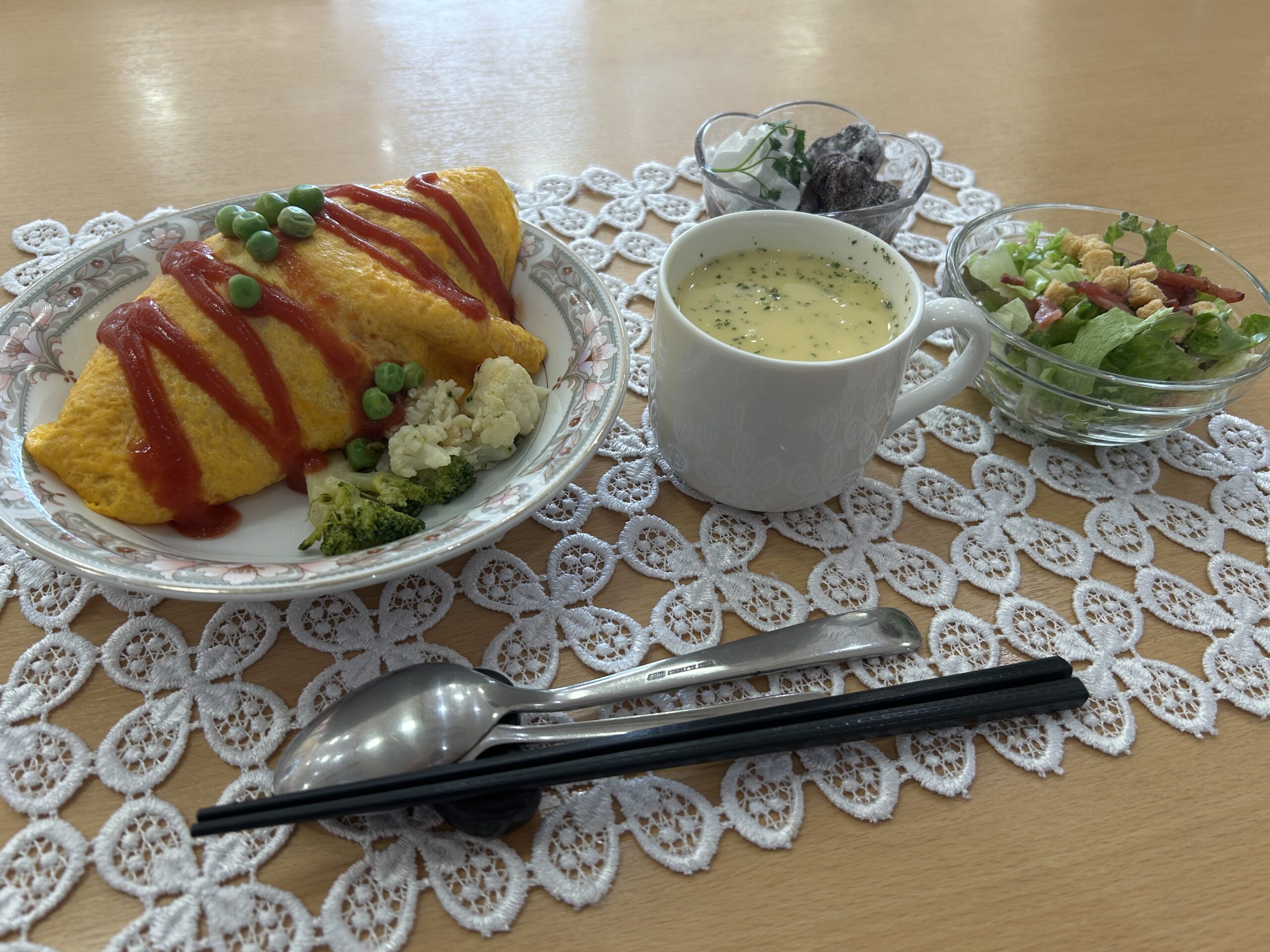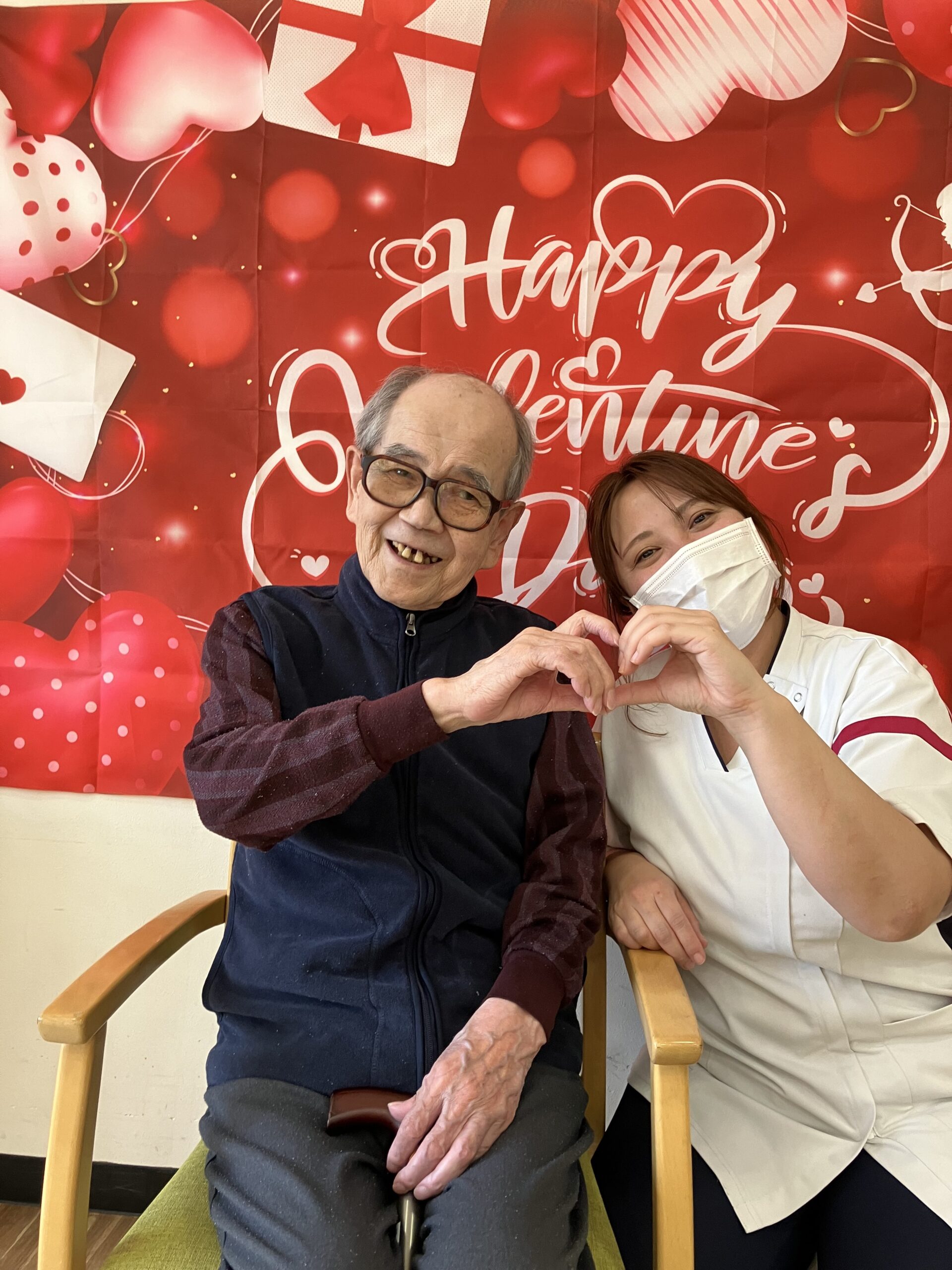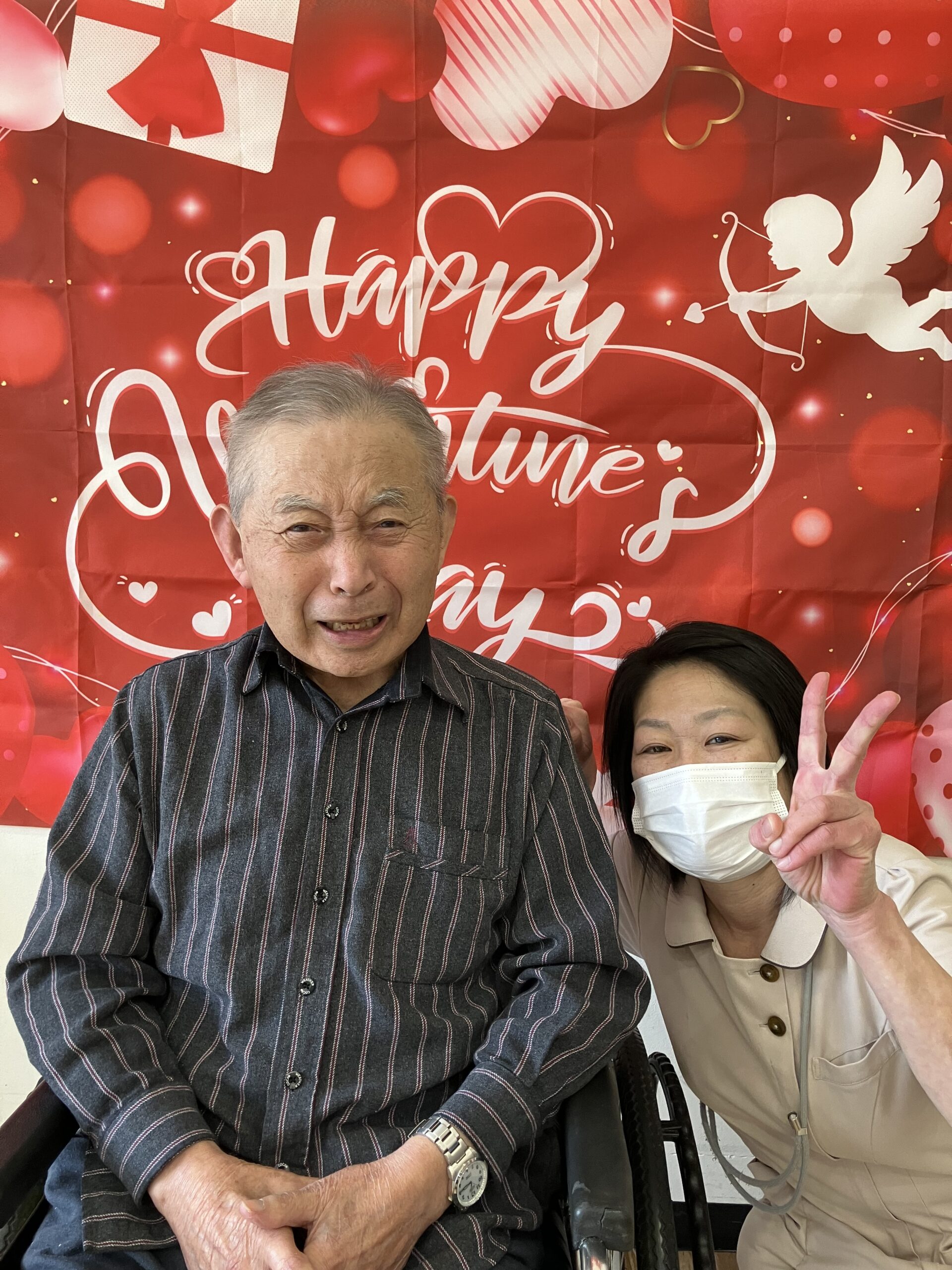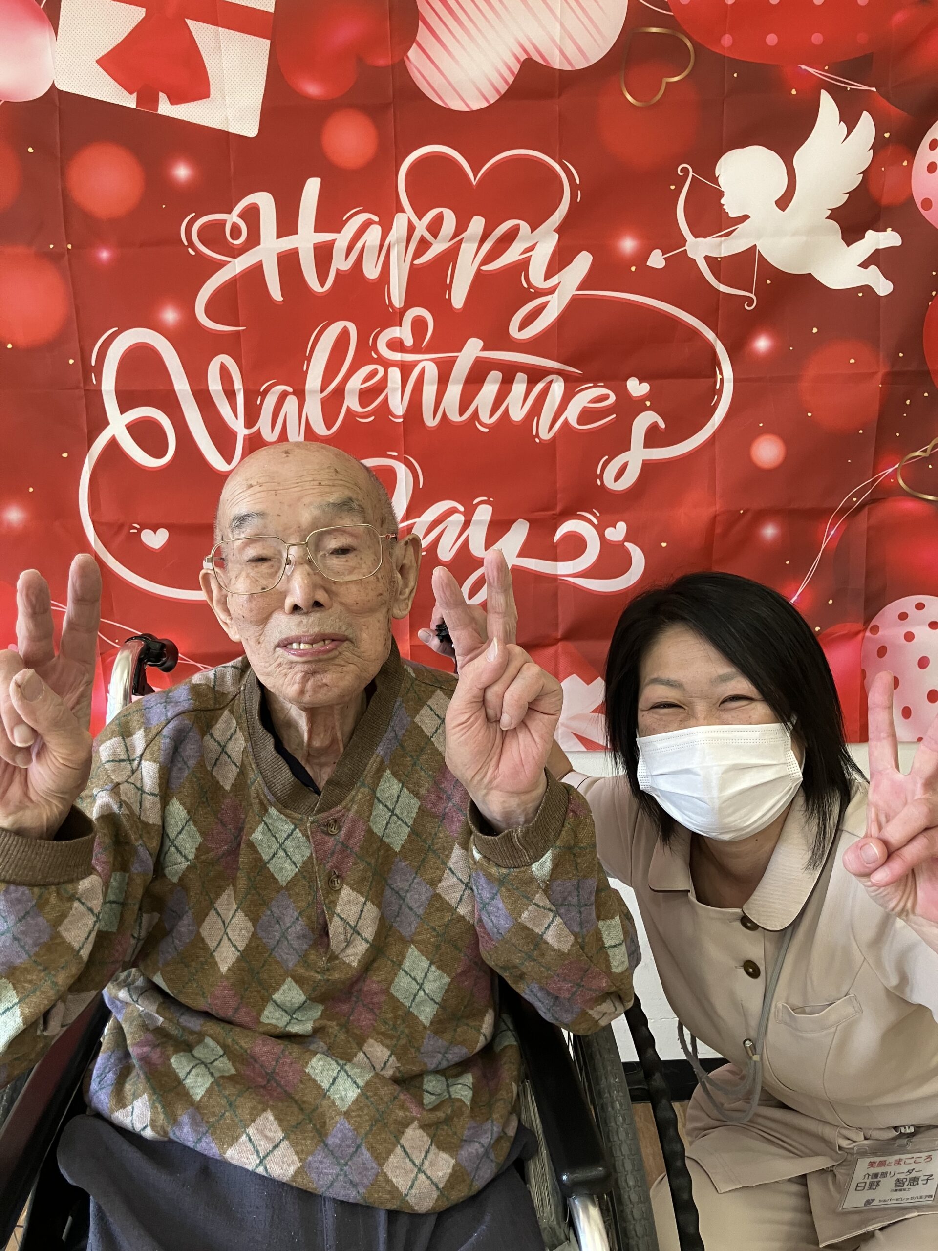 2月14日は「バレンタイン」。この日は特別メニューをご用意しました。ボリューム満点のオムライスに「こんなに食べれるかしら」と驚きの声も♪午後はバレンタインの飾りと一緒に記念撮影。おやつはチョコケーキを楽しみ、笑顔があふれる一日となりました。