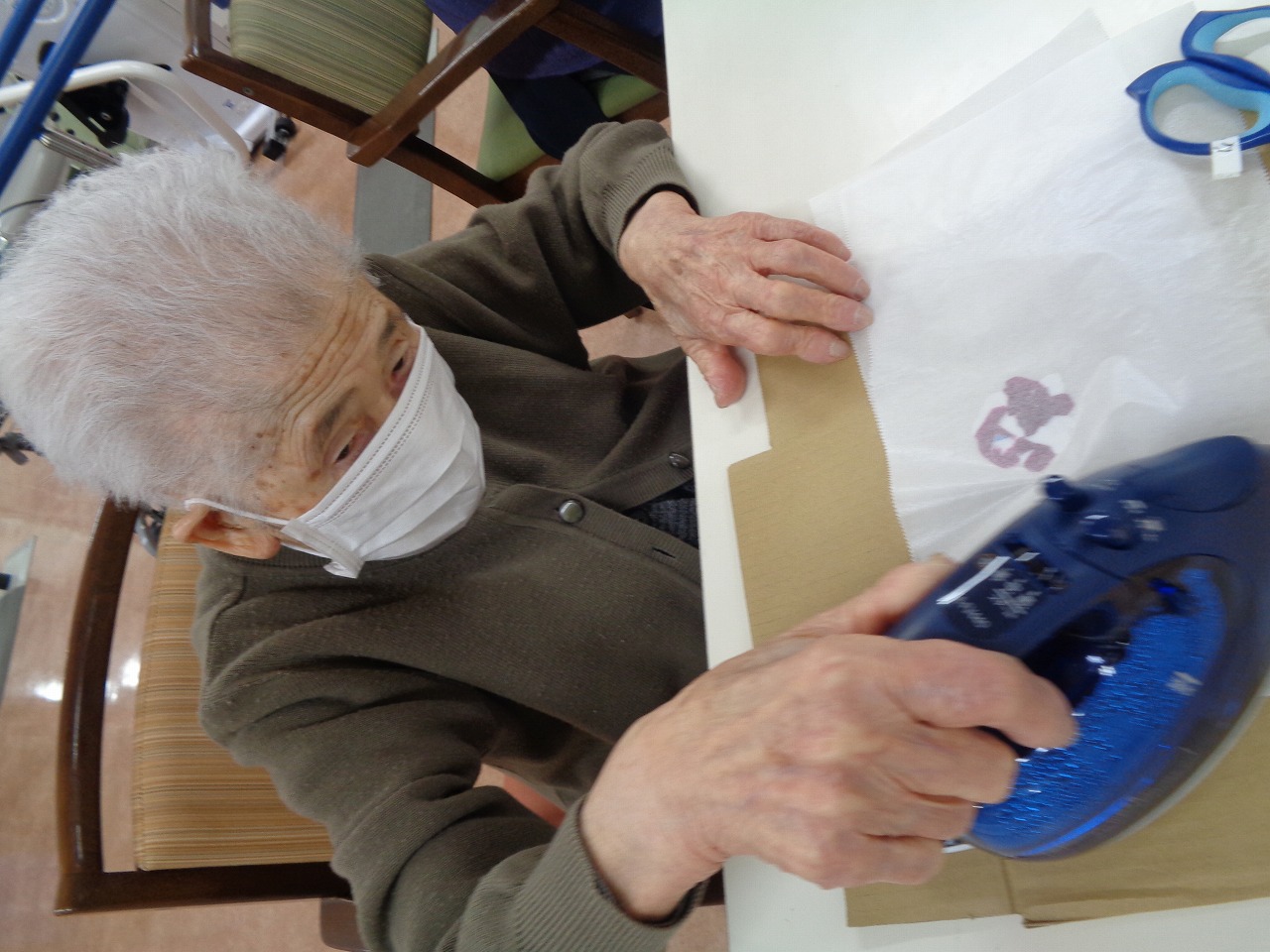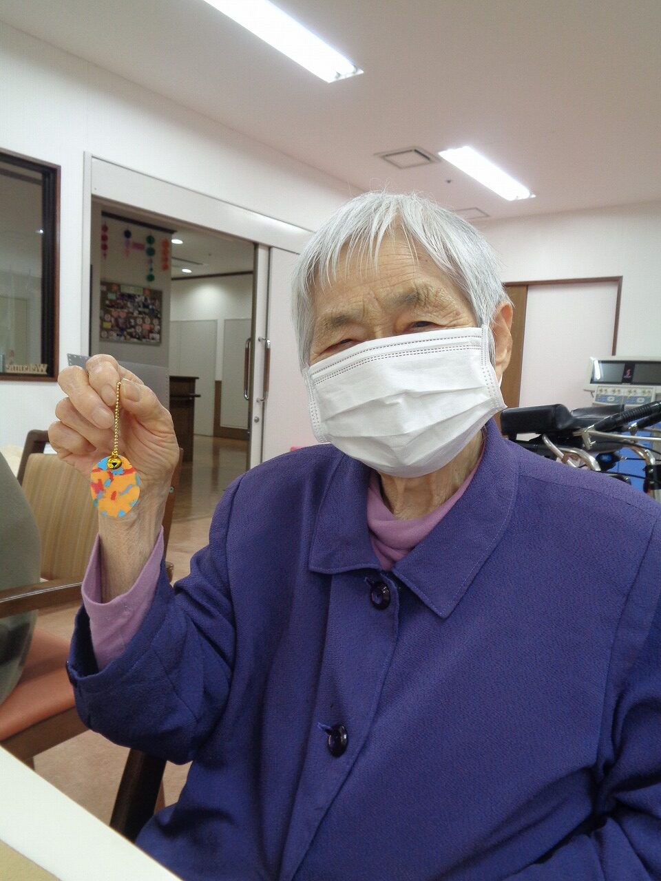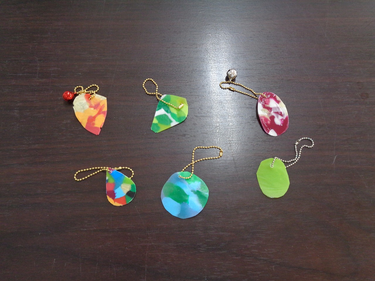 2月11日(水)本日は、ペットボトルの蓋でキーホルダーを作りました!予め、カラフルなペットボトルの蓋を、細かく刻んでおき、皆様にお好きな色を選んでいただきます。クッキングシートに挟んで、アイロンでプレスします。選んだ色が、熱で溶け、面白い色になります。好きな形に切って、チェーンを付ければ可愛いキーホルダーの完成です♪