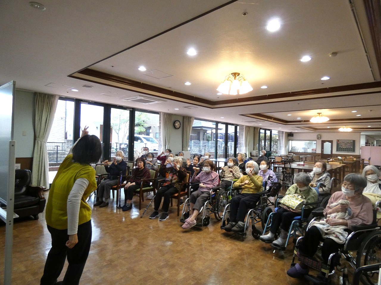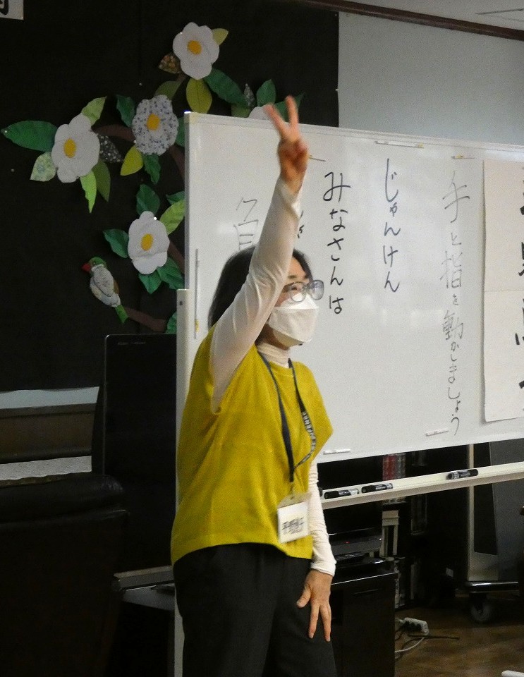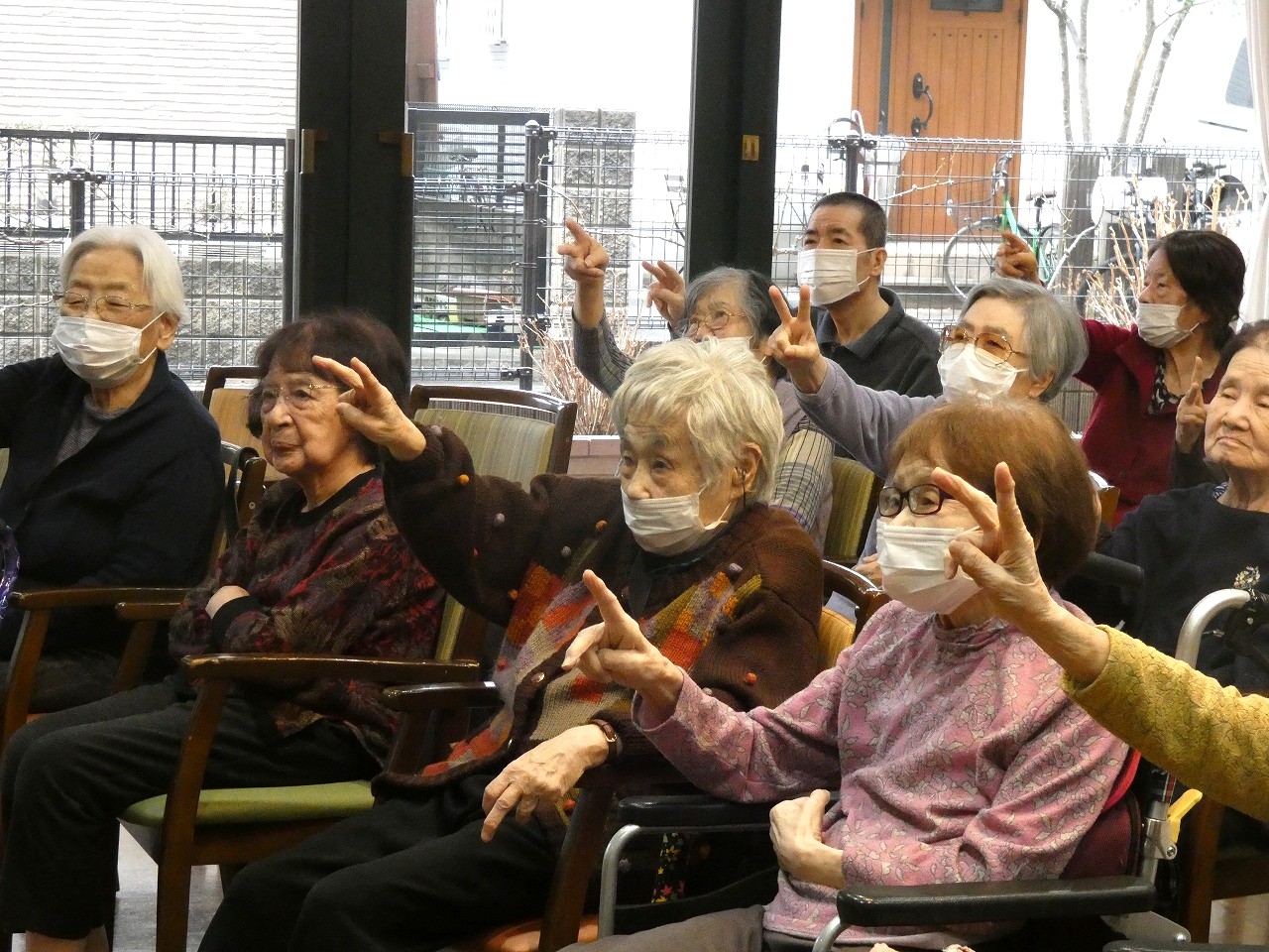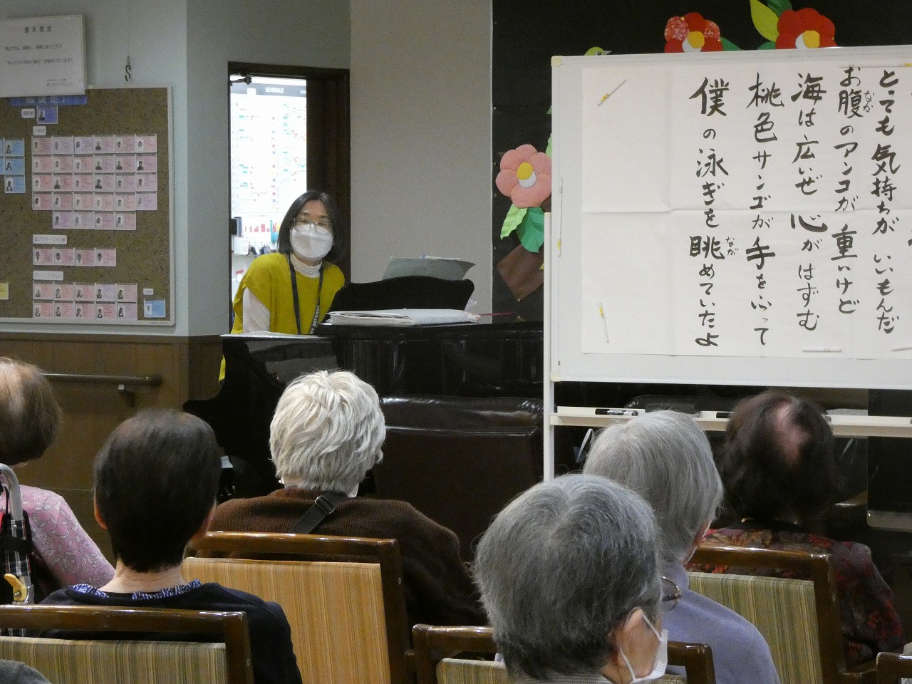 手指の体操、発声練習を行ない、手拍子を交えて歌います(^_^)