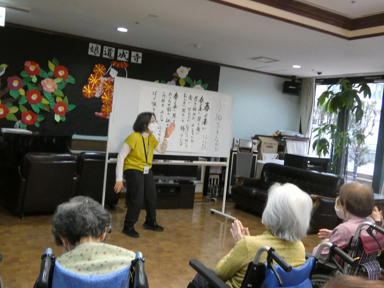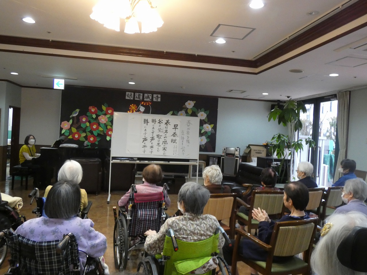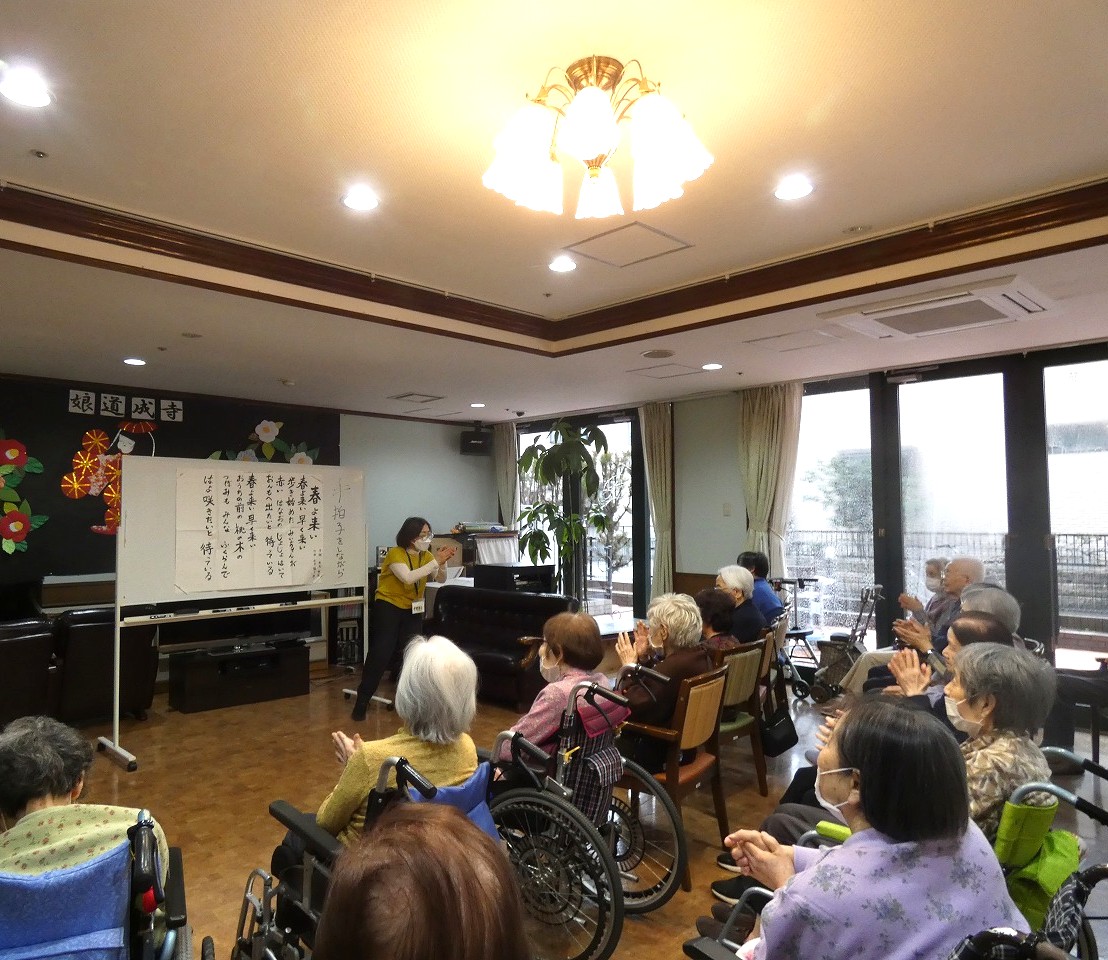 手指の体操、発声練習を行ない、手拍子を交えて歌います(^_^)