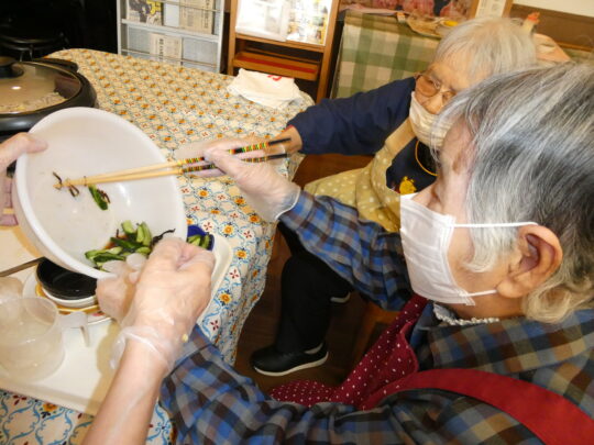 焼いている間に作った「きゅうりの和え物」と一緒に