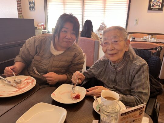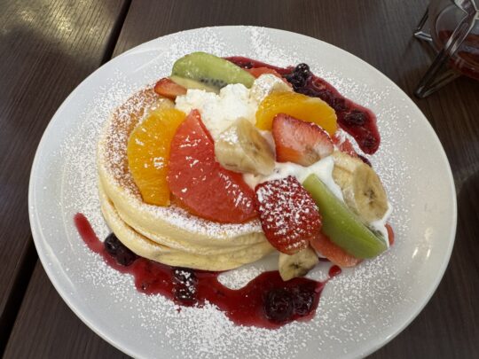 美味しいコーヒーにパンケーキもフワフワで「すっごく美味しい!」と皆様喜ばれておりました。フルーツたっぷりのパンケーキ、季節限定苺のパンケーキ、定番のパンケーキをシェアして召し上がっていただきました☆