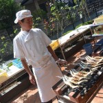 本日はテラスで秋刀魚を焼いて皆様の昼食に