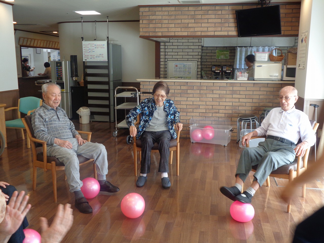 本日は「足の運動を行ないたい」とお話があり、下肢を中心にボール運動を行ないました。