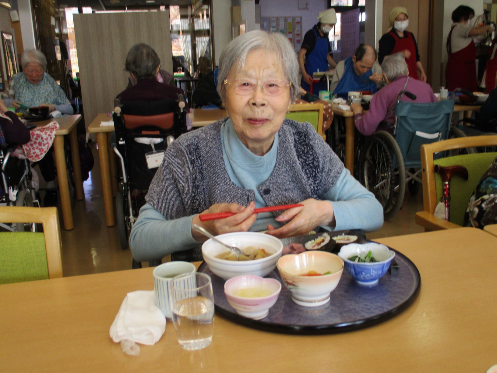 昼食に恵方巻を提供し、今年は「南南東」を向いて召し上がるご入居者の方々もいらっしゃいました。