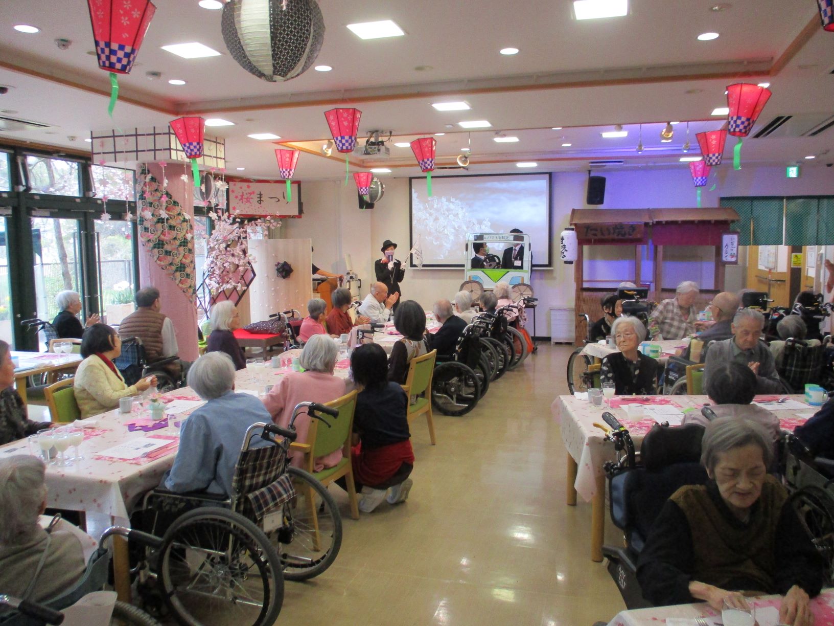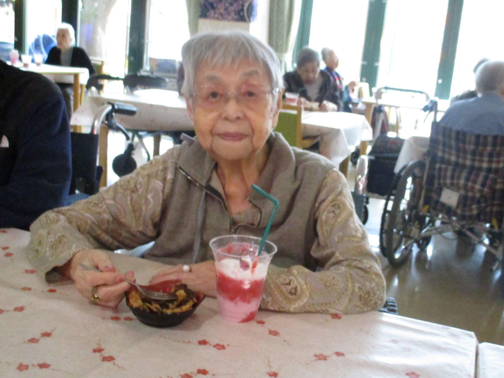 「たい焼き」「いちごミルク」と甘味を味わい、ご入居者と楽しいひと時を過ごしました。