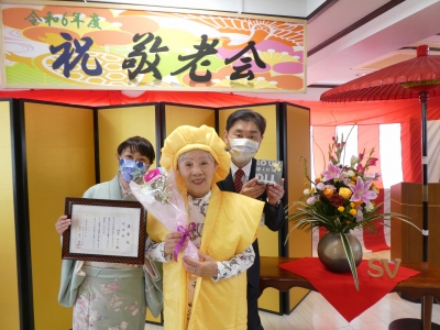 今年は、最長寿の方が100歳で2名いらっしゃり、全部で30名の方をお祝いさせていただきました。