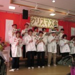 午後は、職員による聖歌隊が「きよしこの夜」と「ジングルベル」を合唱しました。この写真はご入居者の方がサンタとトナカイに扮してクリスマスプレゼントを配っているところで、トナカイの鳴き声も面白く、拍手喝采でした。