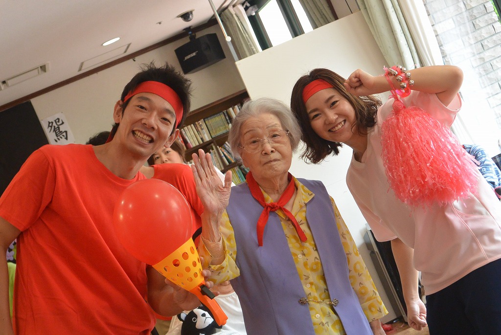 男性職員の応援合戦では、勢い満点の踊りに皆様大笑い。