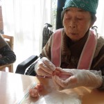 ご入居者と一緒にひき肉をこねてふわふわの肉団子を作りました。