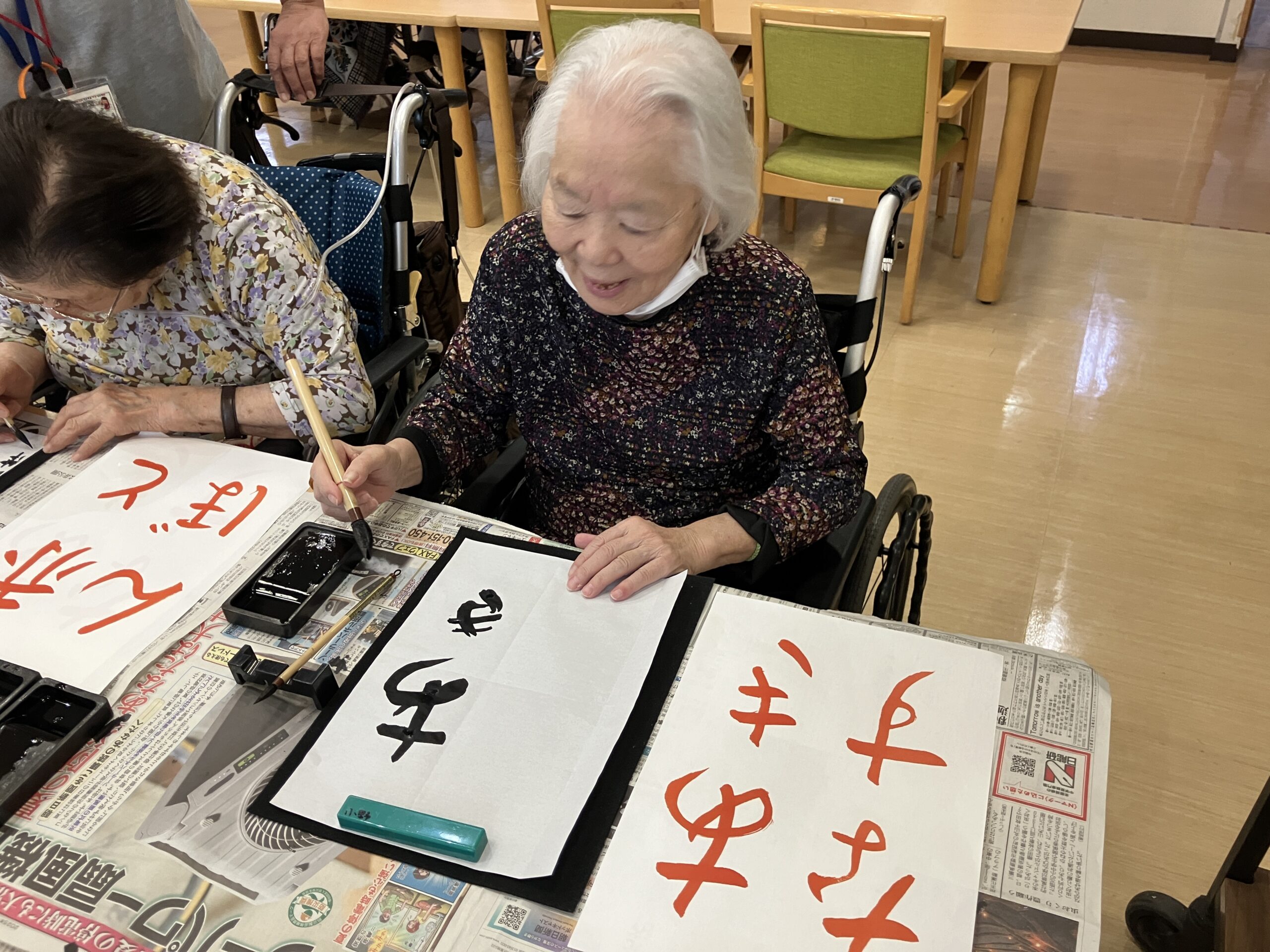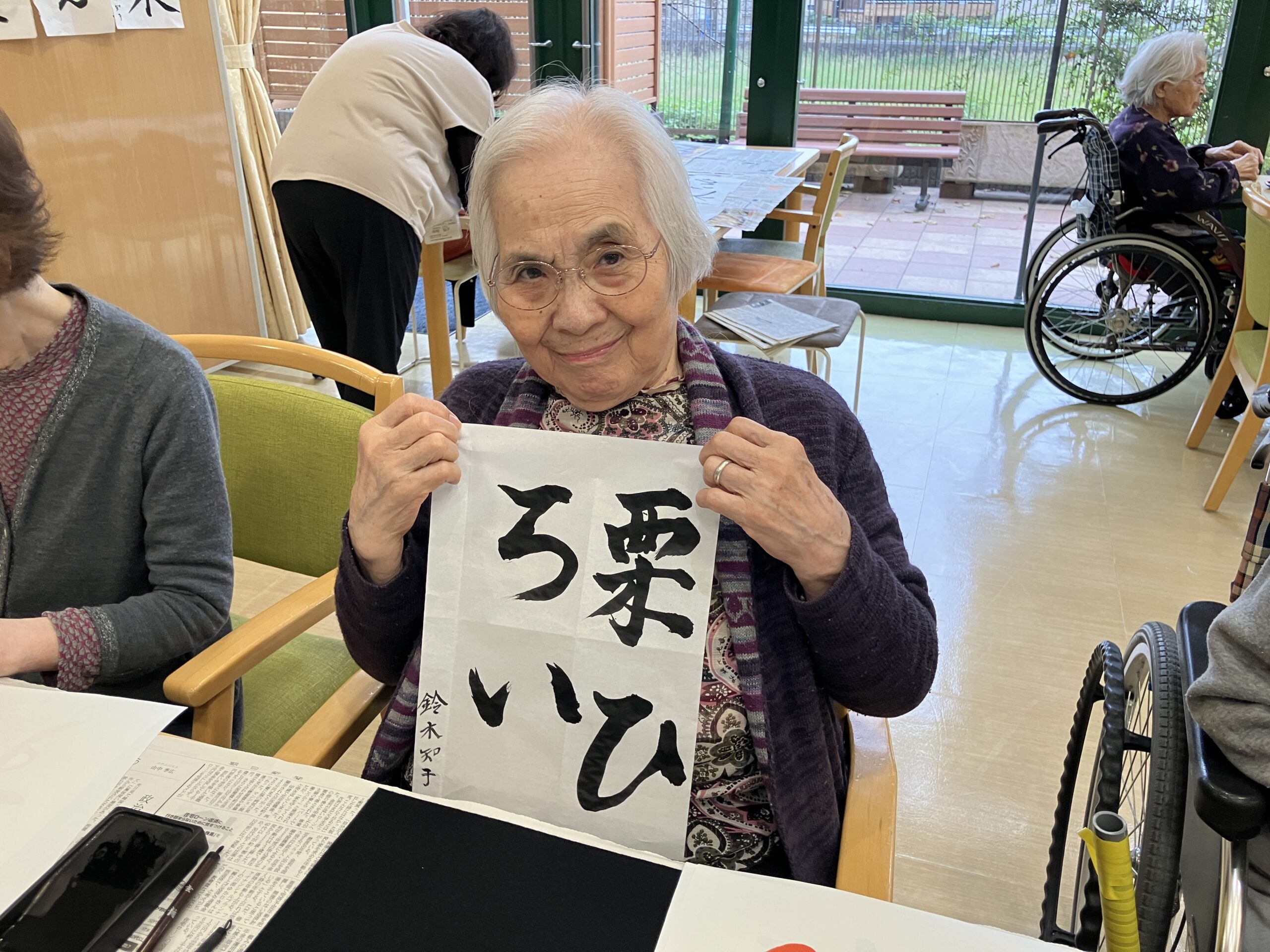 今回の書道教室は「さんま」「栗ひろい」「赤とんぼ」など秋を感じる言葉です(^^♪