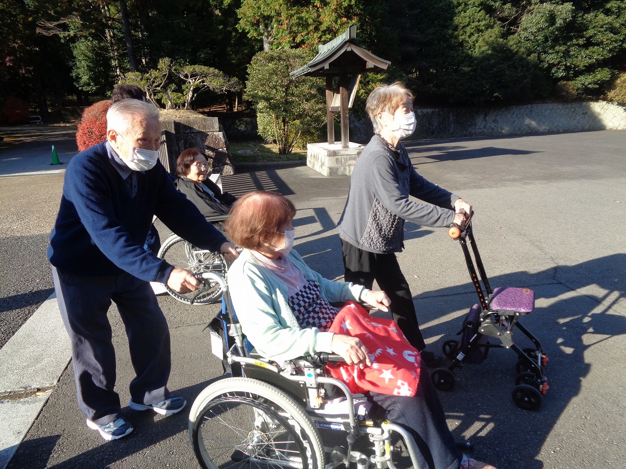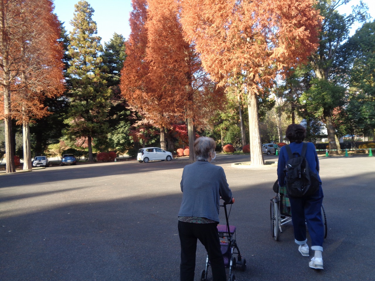12月1日(月)日野東館では紅葉ドライブ&軽食会を実施しました。天気にも恵まれ上着がいらない小春日和のような気候の中、甲州街道のイチョウ並木を鑑賞しつつ多摩御陵に行ってきました。
